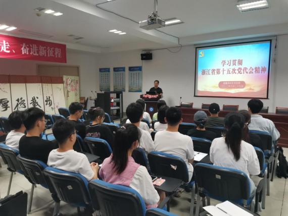 二是各支部以三会一课为载体深入学习省第十五次党代会精神。各师生党支部召开党员大会,组织全体师生党员学习了浙江省第十五次党代会报告及精神解读等。党员们结合自身工作、学习实际,畅谈学习心得体会。大家纷纷表示要以省第十五次党代会精神为指导,积极争做“红色根脉”的坚定守护者、“八八战略”的忠实践行者、“重要窗口”的优秀建设者、共同富裕和现代化的先行探路者、干在实处走在前列立潮头的不懈奋斗者,奋力开创美好未来、赢得更大荣光。