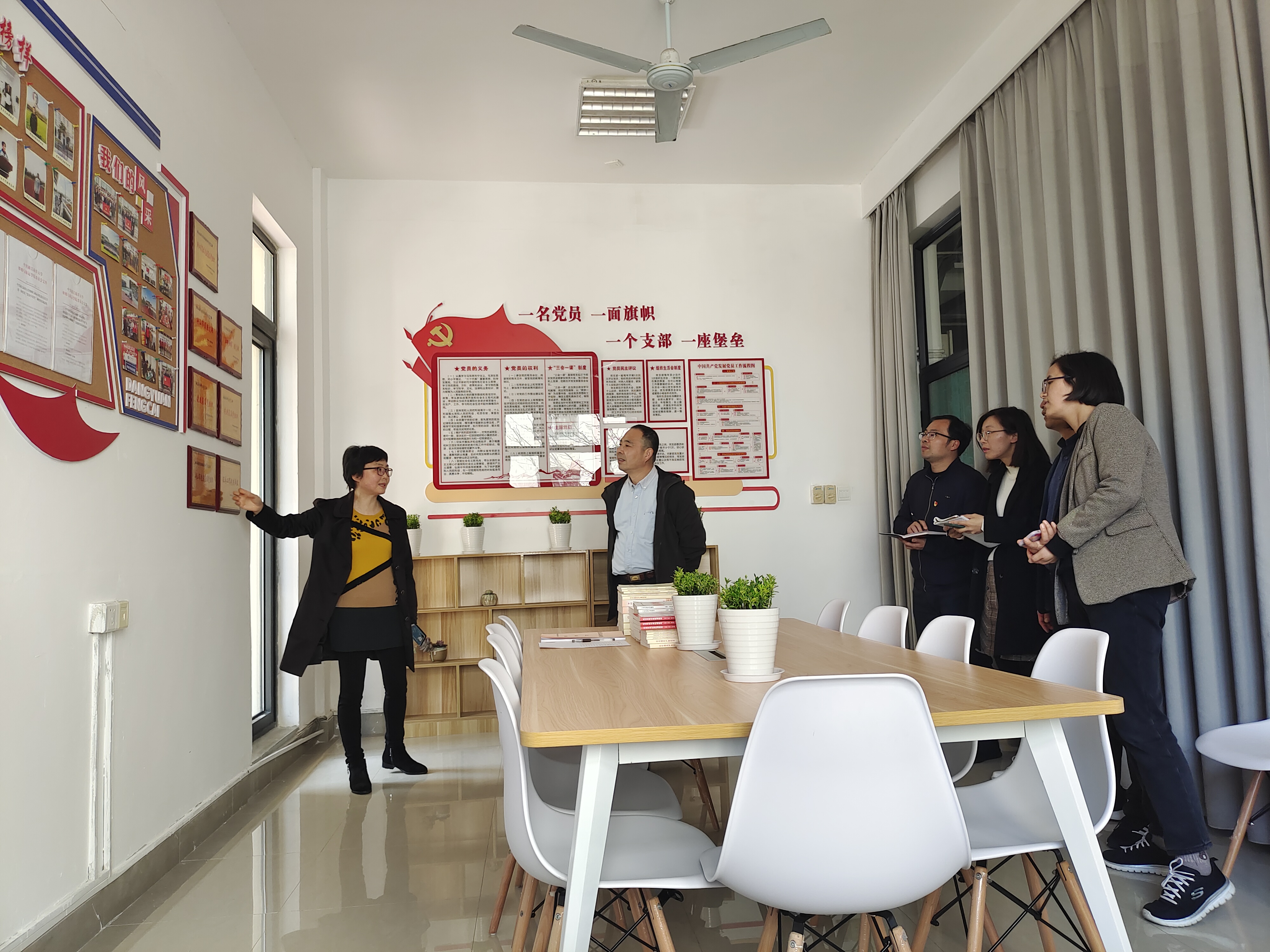 王捷实地查看了学院党建文化墙、党员活动室、党员之家等,听取了学院党委汇报,并对支部建设情况提出改进意见。