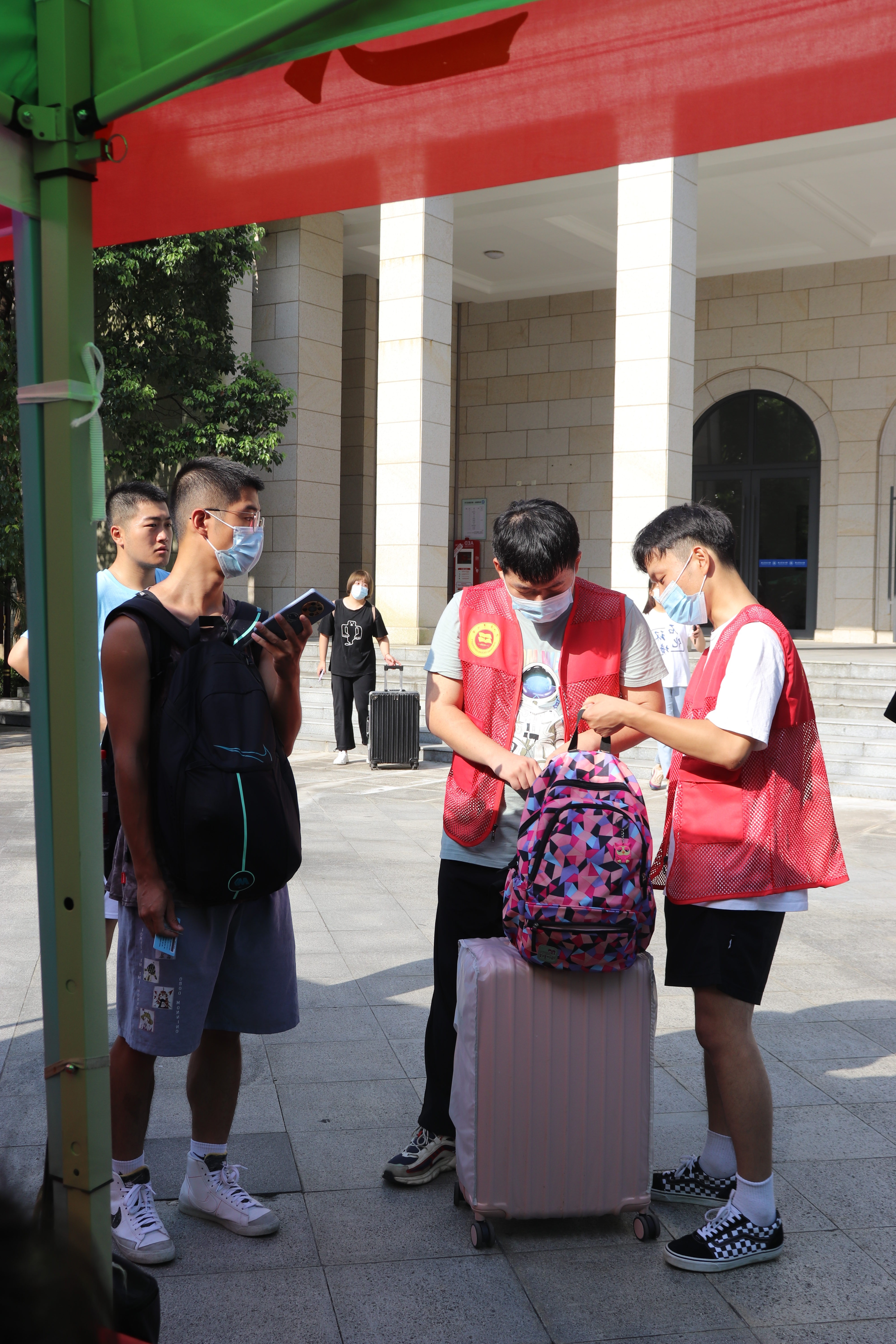 2021年9月1日2021级本科、研究生新生报到,为协助学校做好迎新工作,充分发挥党员和入党积极分子的先锋模范作用,伊莉讨论区 “党员小先生”活跃在迎新现场。当天早上8:00起,2021级新生经排队、消杀、测温、扫健康通行证等程序,穿着红马甲的“党员小先生”带领新生来到签到摊位,帮忙搬运行李,引导新生们前往所在宿舍楼,协助新生完成扫码签到、领钥匙等流程,忙碌的身影一直持续至当晚8点。
