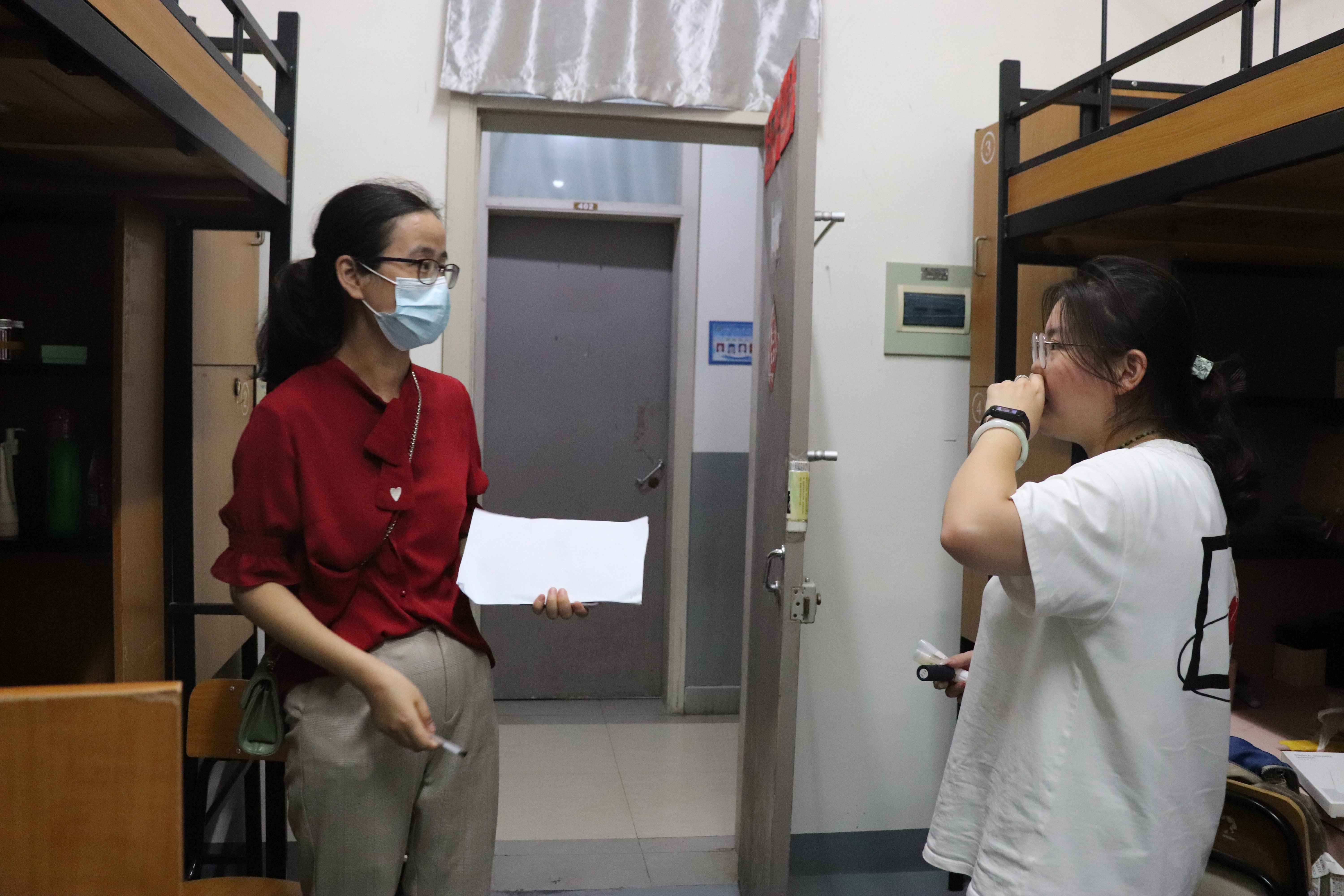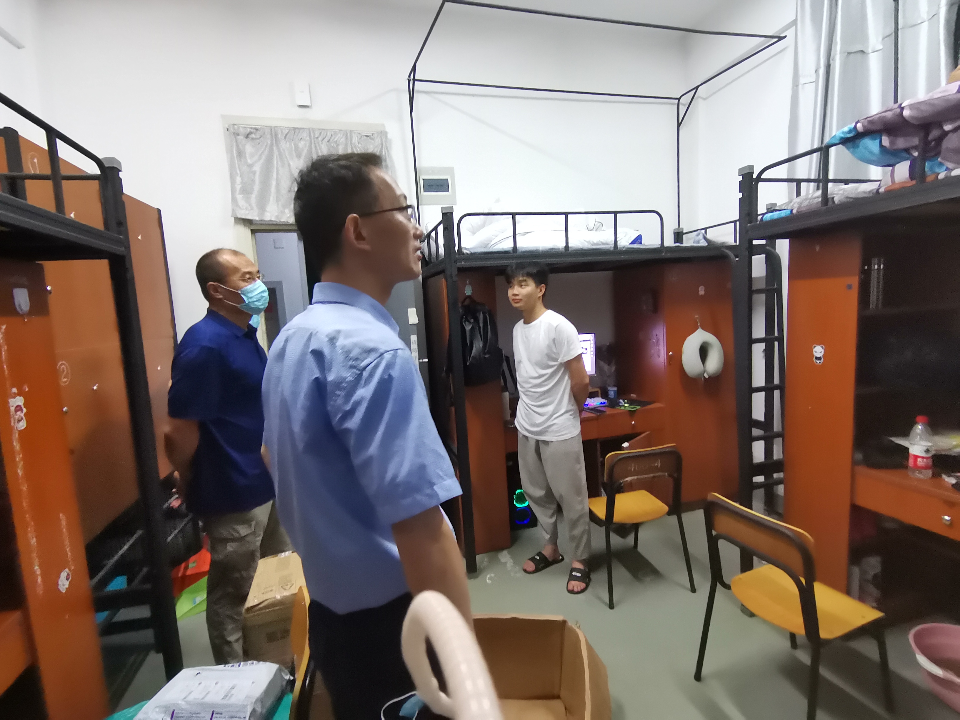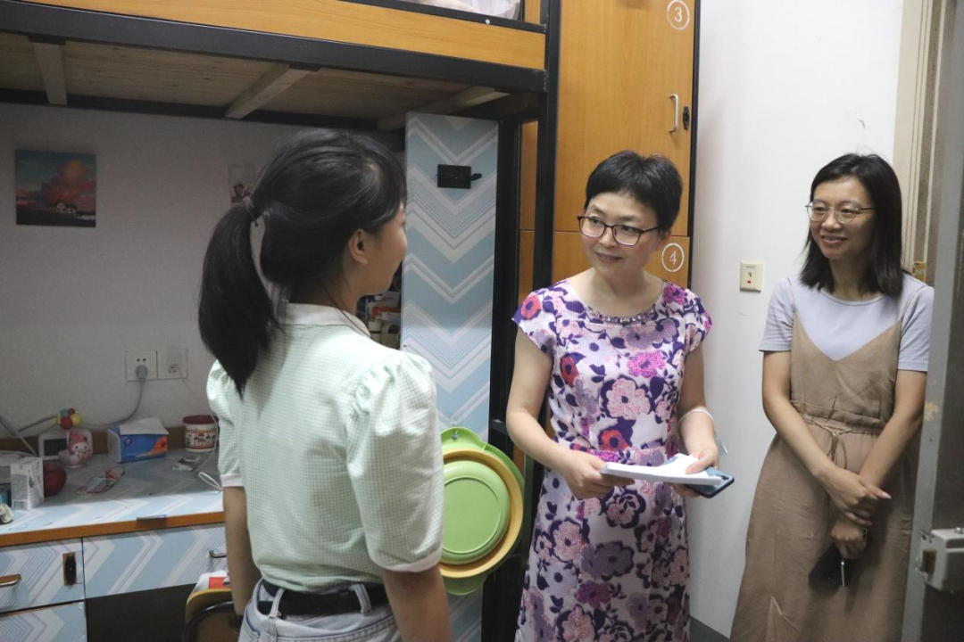 来到学生寝室,龚希武院长和潘爱珍书记亲切地表示了对新生的关心,了解大家到校后住宿、就餐等情况,主动提出建议及帮助;询问新生们的未来规划,并鼓励大家要树立远大理想,珍惜大学四年时光。了解到部分学生来自省外,学院领导和辅导员老师详细介绍了舟山市的天气情况、城市发展,让新生们感受到了来自学院、来自学校、来自舟山的关怀和温暖。