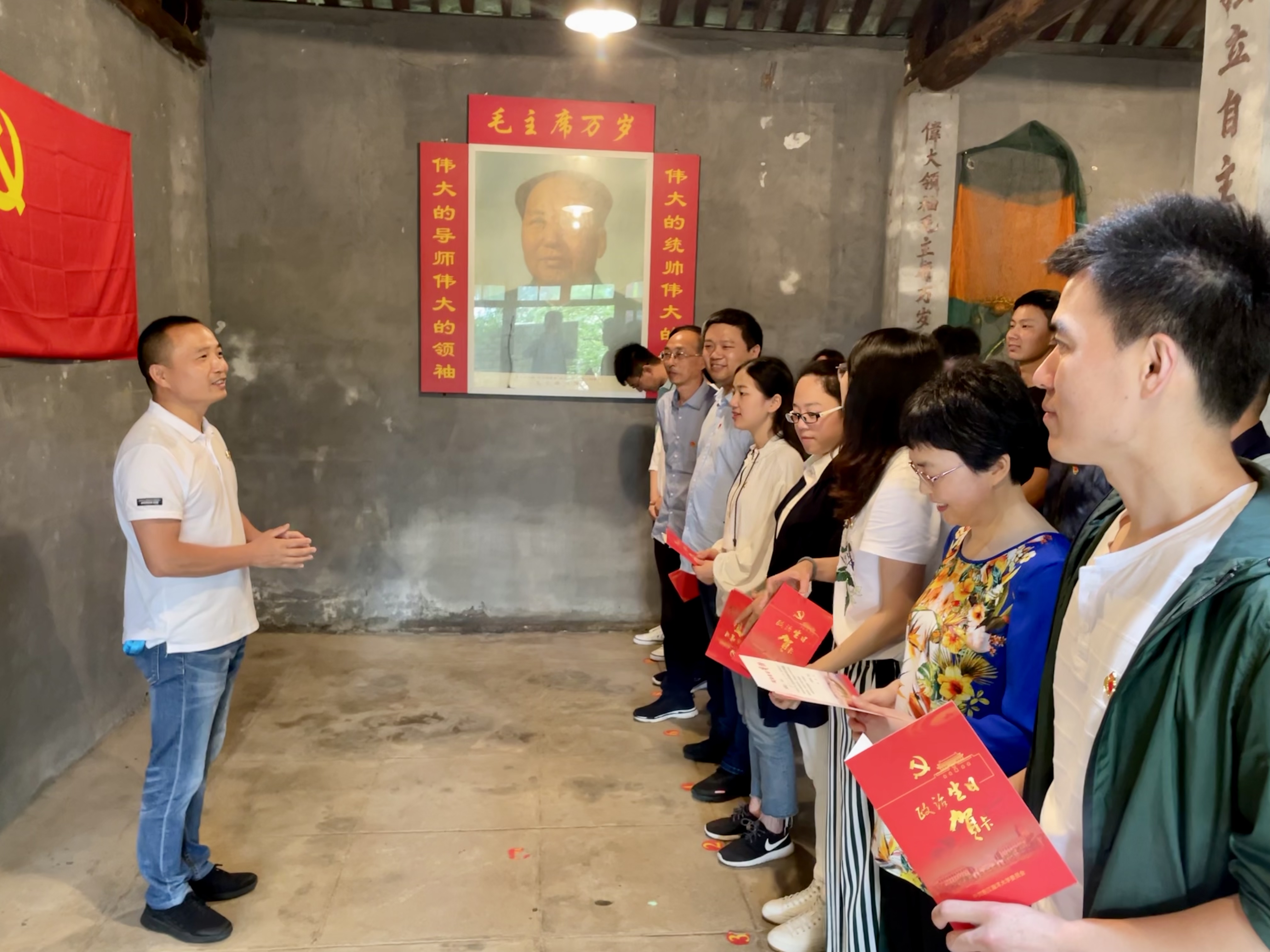 全体党员同志在祝贵兵的带领下重温入党誓词,在充满红色回忆氛围的人民公社旧址,全体党员同志回忆初心,勇担使命。随后,王贺峰结合自身的入党历程向全体党员同志们分享了他在党史学习中的收获和感触。