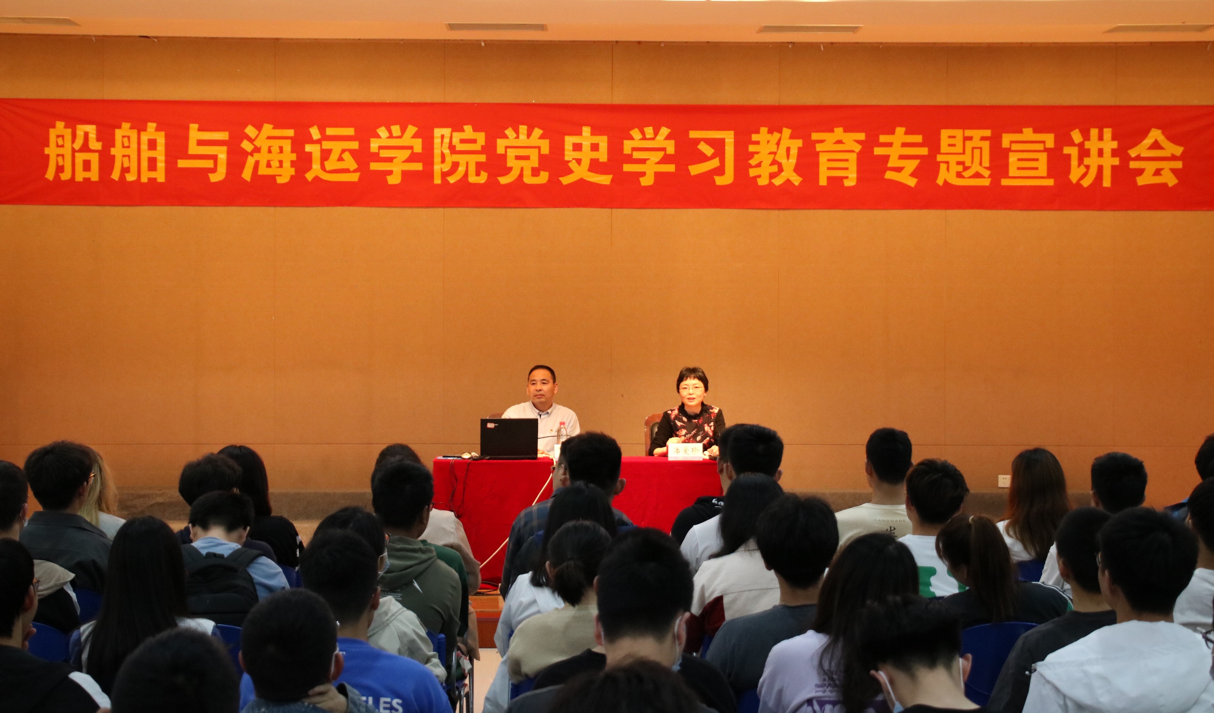 全体学生党员、全体教职工作了题为《牢记殷切嘱咐,服务海洋经济发展》的党史学习教育专题宣讲。学院党委书记潘爱珍主持宣讲会。