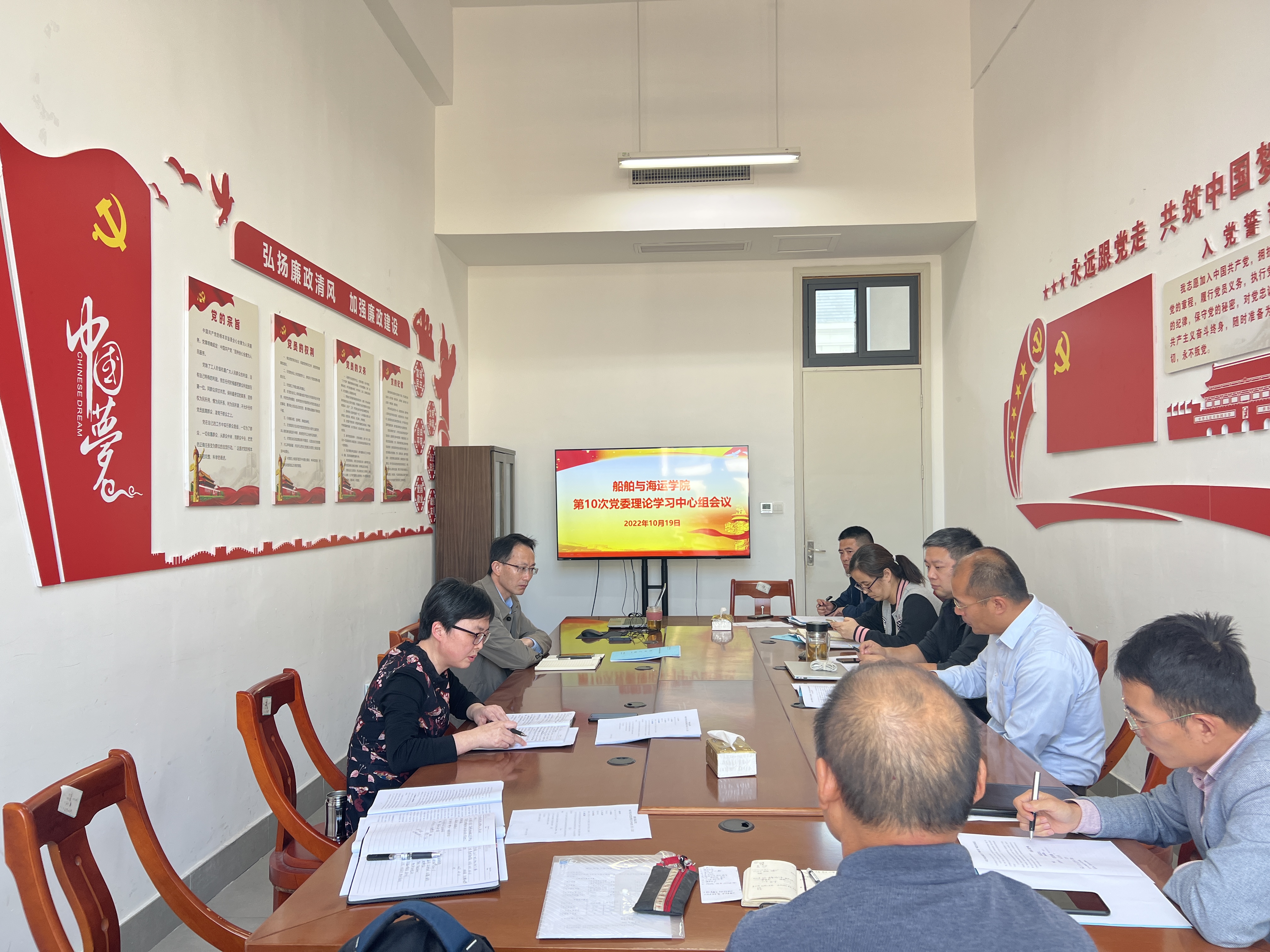 2022年第10次党委理论学习中心组学习会在工科楼227召开,中心组成员参加会议,学院党委书记潘爱珍主持会议。