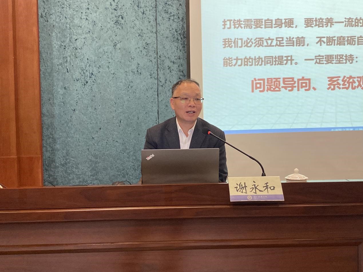 谢永和副校长要求,全体教职工要从坚持教育、科技和创新能力协同提升角度出发,要立足当前,坚持问题导向、系统观念、协调发展的要求,深学细悟党的二十大精神,不断磨砺自己,提升业务素质,落实好立德树人根本任务。全体同学要从立志做有理想、敢担当、能吃苦、肯奋斗的新时代好青年的角度出发,要始终牢记习近平总书记的殷殷嘱托,要做到目标要坚定、步伐要稳健、发展要协调,成大才、担大任,做新时代的青春奋斗者。