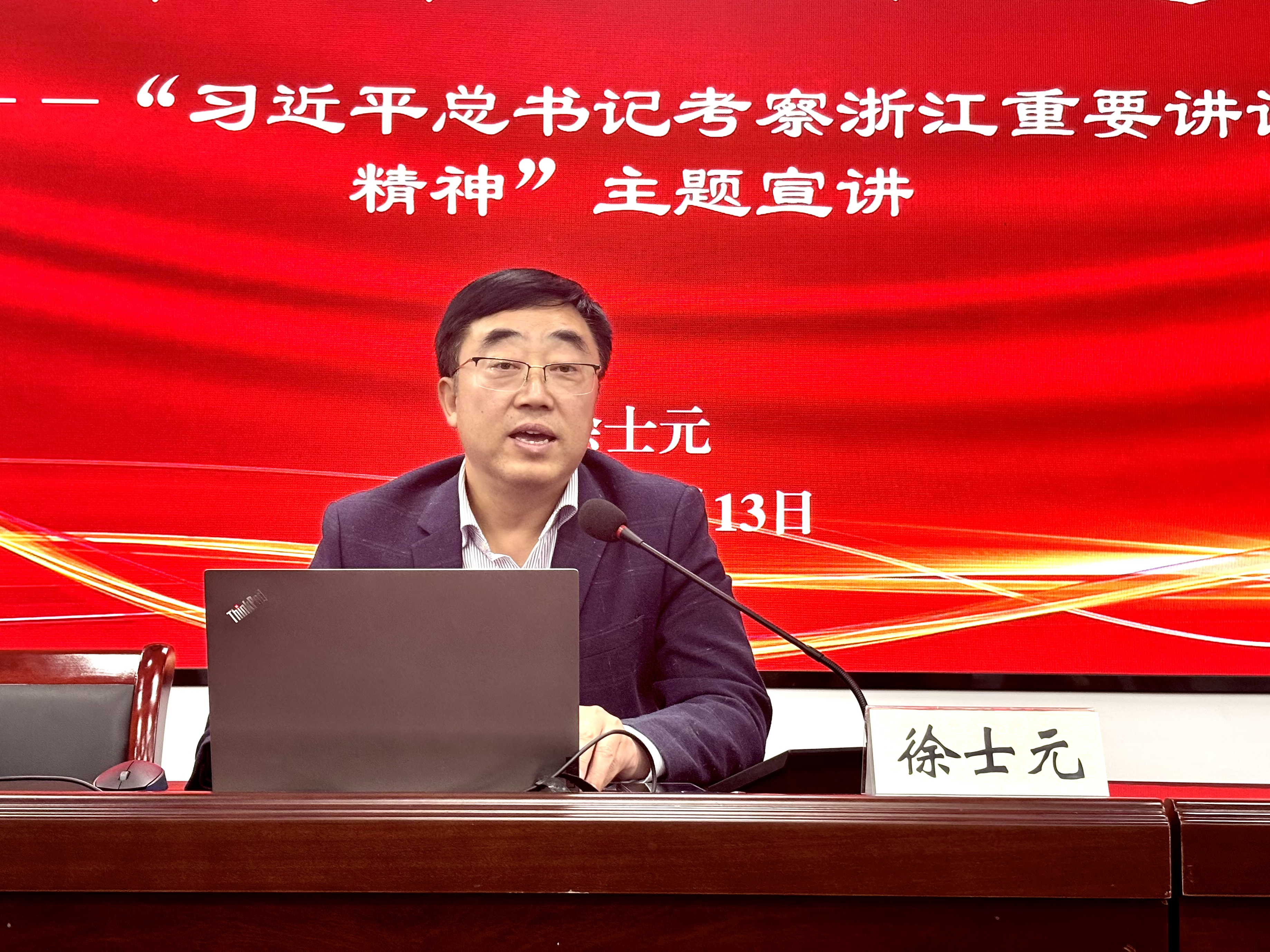 为进一步深入学习好、贯彻落实好习近平总书记考察浙江重要讲话精神,持续推进学习贯彻习近平新时代中国特色社会主义思想主题教育走深走实,11月13日下午,学校党委委员、副校长徐士元教授在工科楼120报告厅为学院师生作“习近平总书记考察浙江重要讲话精神”主题宣讲。学院党委书记闫海强主持宣讲会。