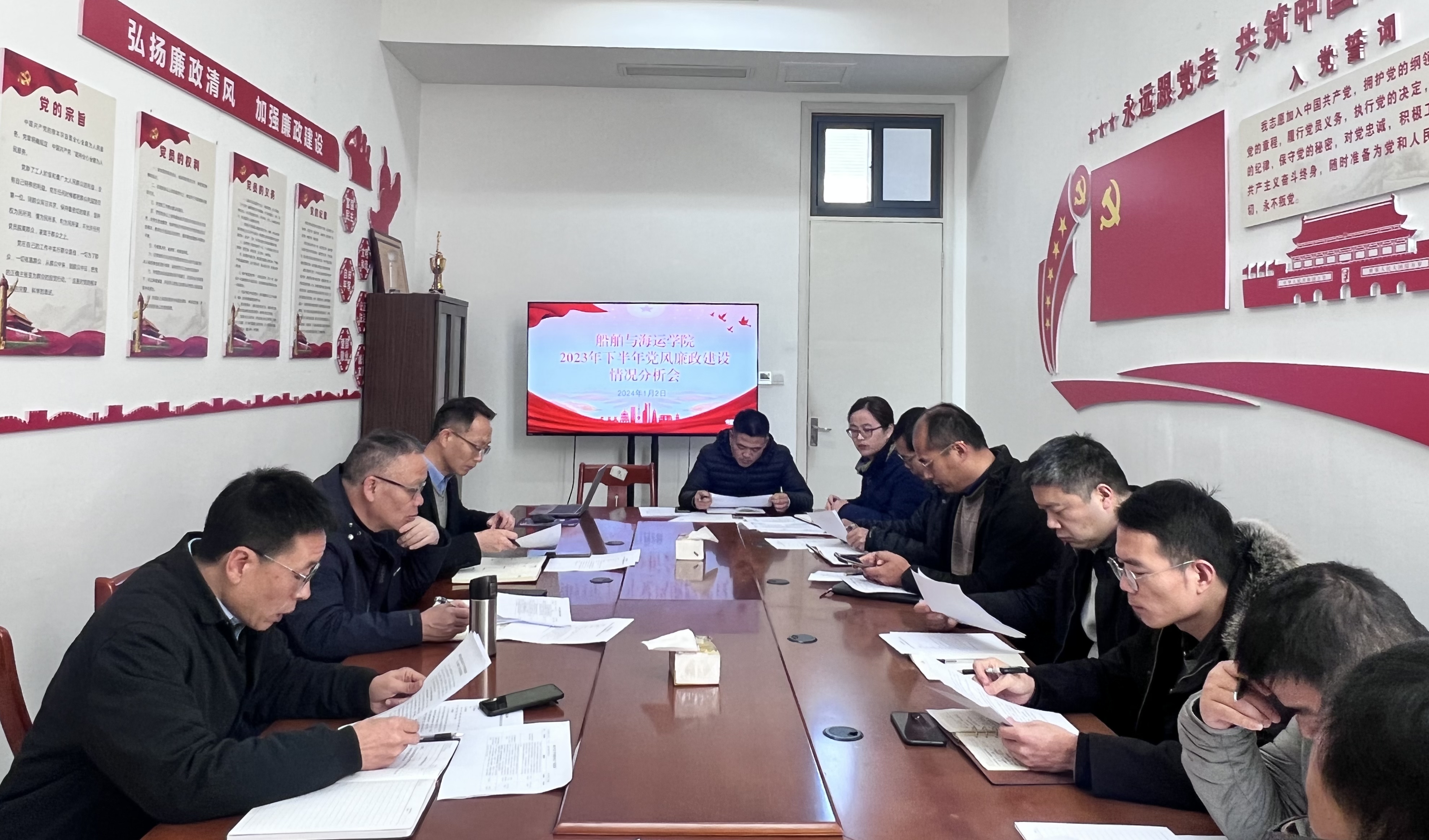 学院党委书记闫海强对2023年上半年廉情分析会所梳理出的问题整改落实情况进行了总结,并重点围绕思想政治教育、党风廉政责任、师生支部建设、巡察整改工作、专项整治工作、船员培训管理等方面对党风廉政建设“第一责任人”职责履行情况进行了汇报,分析了学院当前在廉政建设方面存在的风险点及问题,并对下阶段工作提出打算。