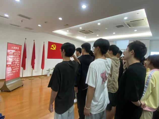 随后,我们走进舟山记忆展厅,面对鲜红的党旗,大家举起右手,铿锵恢宏地宣读了入党誓词,表达我们对党坚定不移的信仰和承诺。