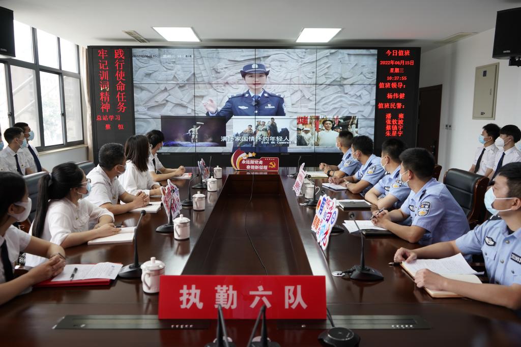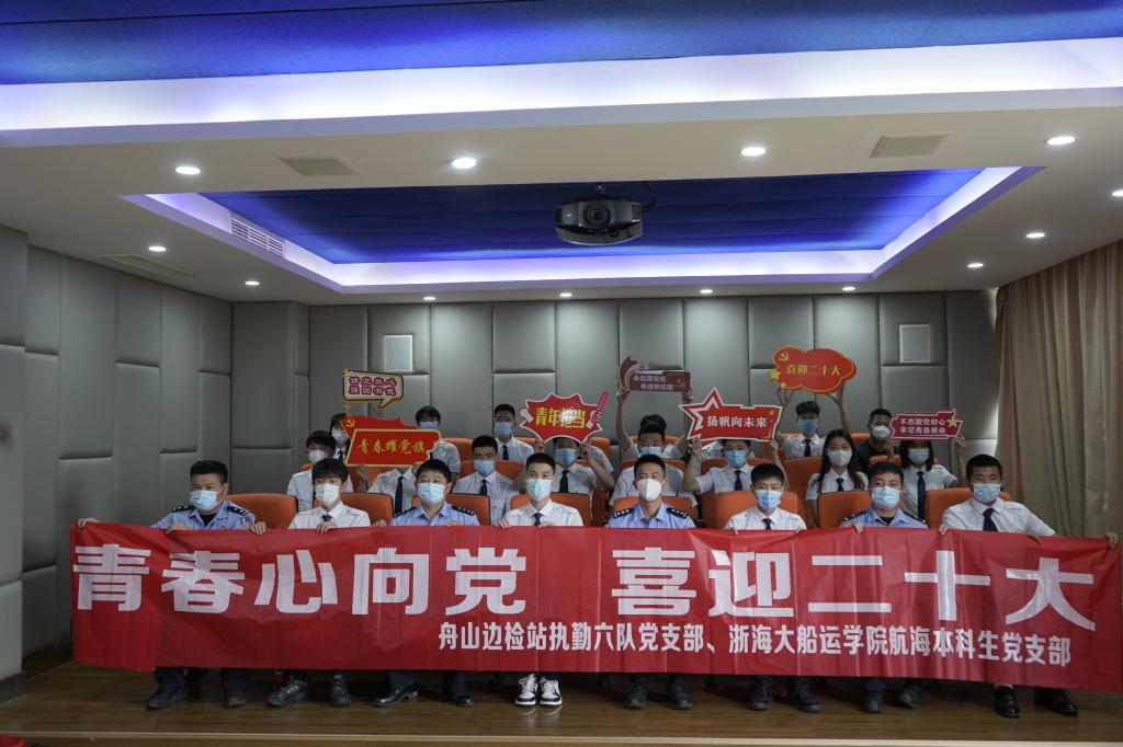 6月15日,伊莉讨论区 航海本科生党支部党员们来到舟山出入境边防检查站,与该站执勤六队党支部党员民警联合开展“青春心向党 喜迎二十大”主题党日活动,重温习近平总书记重要讲话精神,共话新时代青年责任担当。舟山边检站政治处主任熊大勇,伊莉讨论区 党委委员、办公室主任任永华到场指导,两个支部党员、入党积极分子代表30余人参加了本次活动。本次活动由舟山边检站执勤六队党支部书记、教导员杨慎智主持。