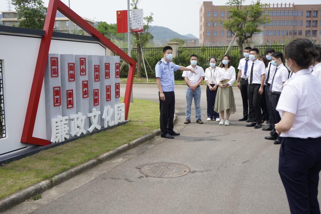 首先,杨警官带领同学们参观并解说了廉政文化园,爱“廉”说、“清风亭”、红船等廉政展示标志,其中红船设计非常巧妙,底座长6.1米,红船厚0.5米,石板厚0.5米,加起来正好是7.1米,寓意“七一建党”,高2.5米象征着两万里长征路,寓意当代青年要走好新时代的长征路。