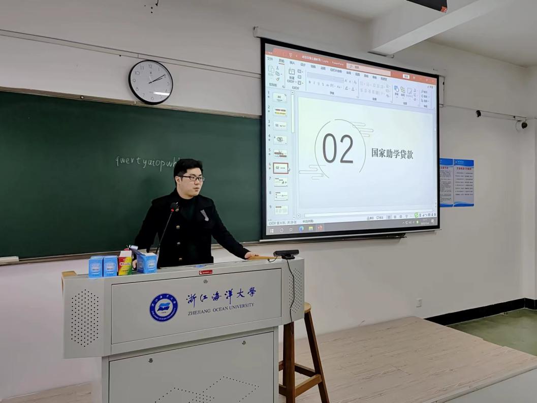 辅导员陈浪向同学们介绍了国家助学贷款以及相关还款的注意事项并且展示了相关违约案例,介绍了违约的后果,帮助同学们树立诚信还款的意识,以及考试诚信、学术诚信、生活诚信重要性;同时解释了诚信这一词的内涵,希望同学们可以对诚信有进一步的认识,牢牢树立诚信自强意识,希望大家要崇尚节俭,树立信心。