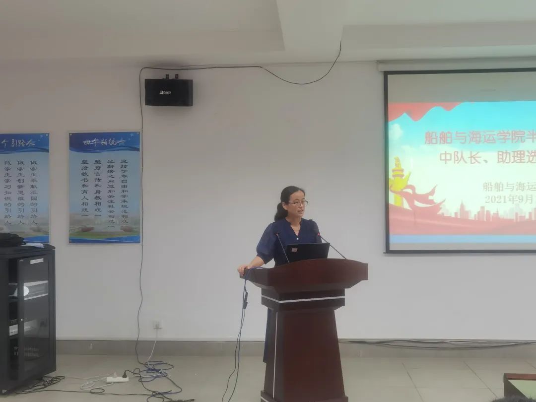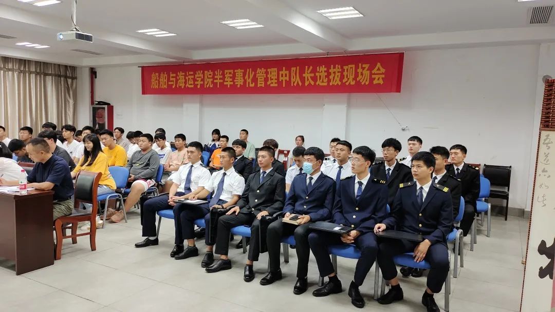 在工科楼120进行了半军管中队长竞选仪式,学院党委副书记、纪委书记何晔,学院学工办辅导员老师出席竞选仪式,活动由军事教官王贺峰主持。航海技术、轮机工程(轮机管理方向)专业学生代表参加活动。