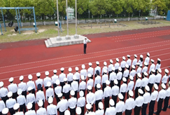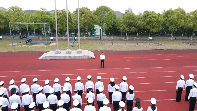 半军管大队全体学生在指定位置集合完毕,穿着海员制服坚毅潇洒,踏着整齐的步伐整队向操场而去。