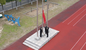 升国旗仪式于6:20准时开始,国旗班的旗手们迎着朝阳,以饱满的热情,庄严地护卫着五星红旗,当雄壮有力的《义勇军进行曲》响彻了整个操场时,同学们集体立正行注目礼,全场弥漫着一种庄严肃穆的气息,鲜艳的五星红旗冉冉升起,激发了所有同学不断向上的斗志,点燃了同学们强烈的爱国热情。