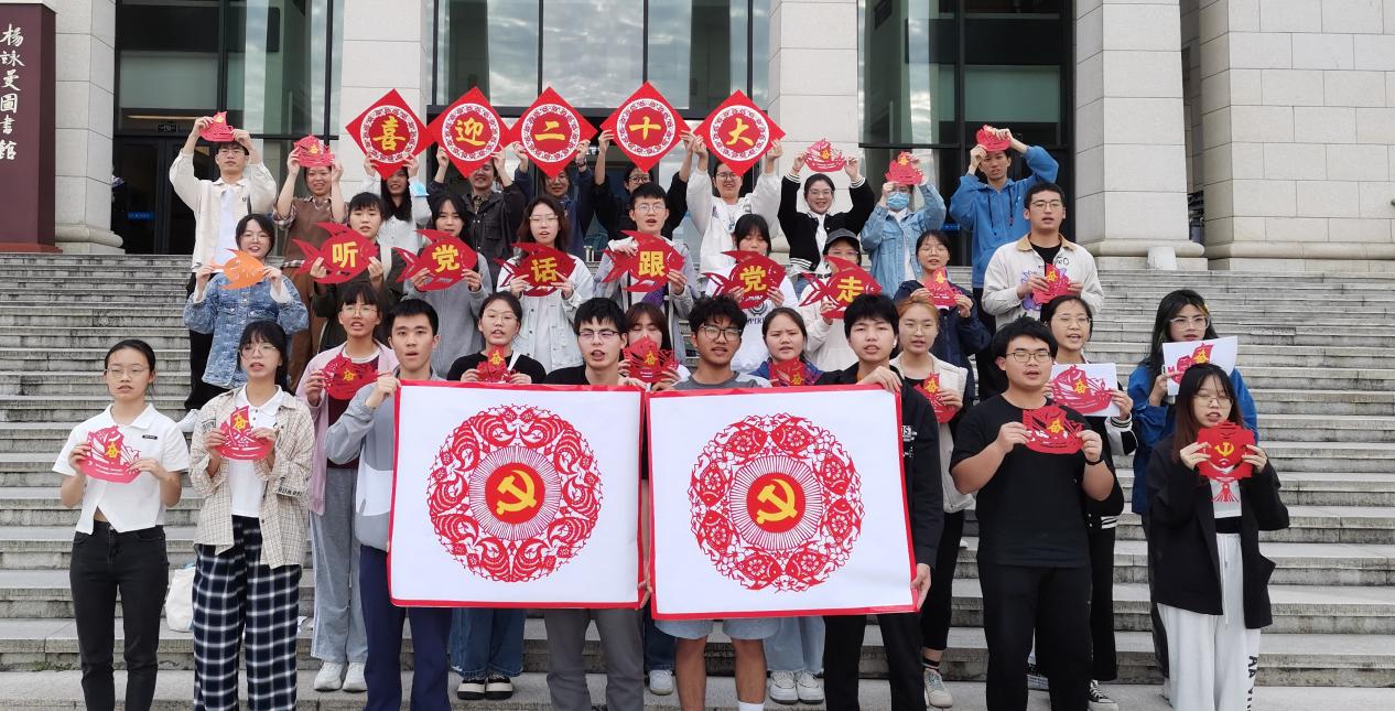 海洋剪纸协会在公共教学楼228开展“听党话,跟党走,不负青春韶华之学习习近平总书记在共产主义青年团成立100周年重要讲话”剪纸活动。