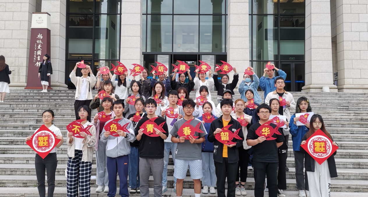 活动开始,剪纸协会会长吴欣怡带领会员们重温习近平总书记在庆祝中国共产主义青年团成立100周年大会上的金句,一个民族只有寄望青春、永葆青春,才能兴旺发达;坚定不移跟党走,为党和人民奋斗,是共青团的初心使命;实现中国梦是一场历史接力赛,当代青年要在实现民族复兴的赛道上奋勇争先;奋斗是青春最亮丽的底色,行动是青年最有效的磨砺;有责任有担当,青春才会闪光。
