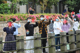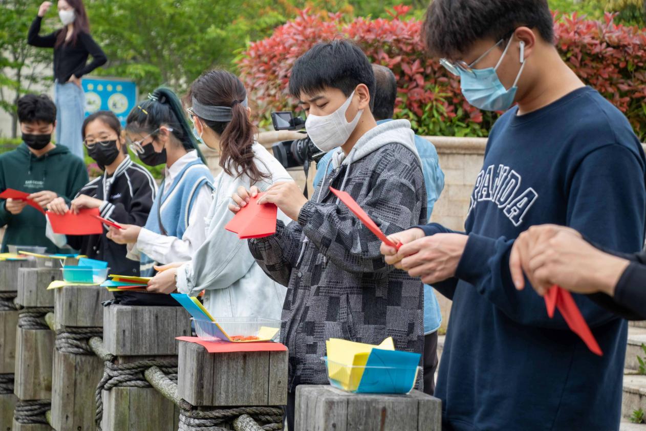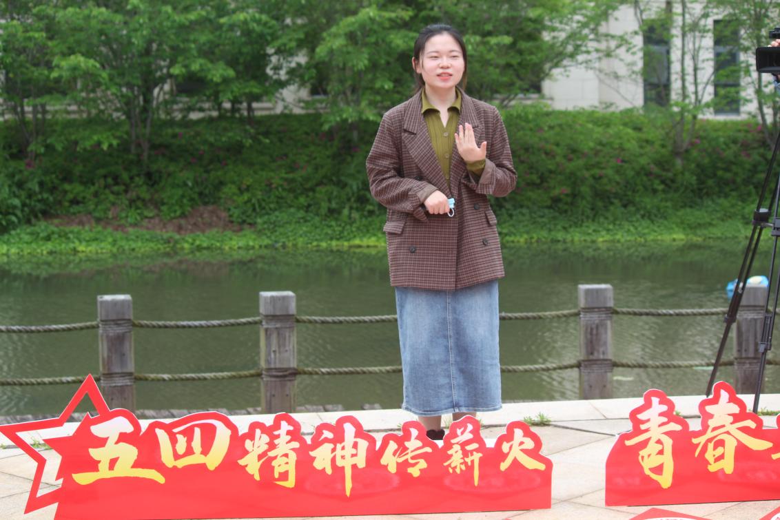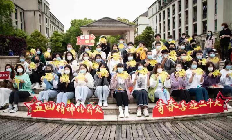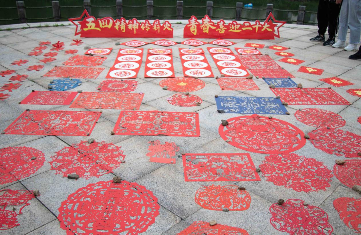 最后,严敏慧老师号召大家举起手中的剪纸,用言语诉说对党的热爱,鼓励大家承担起青年的责任,用新时代青年的蓬勃朝气迎接二十大。“传承五四精神,不负青春年华”,“五四青年,传承有我”……一声声响亮的口号回荡在校园里,也深深地感染了在场的同学们。