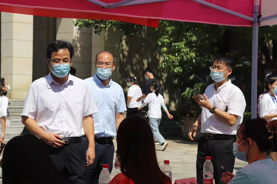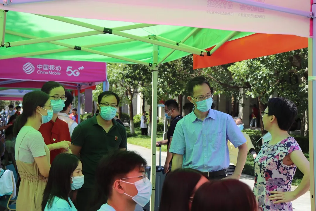 上午10:00,学校、学院领导前来视察迎新工作。辅导员、班主任们也前来看望新生,为后续的迎新工作做好准备。