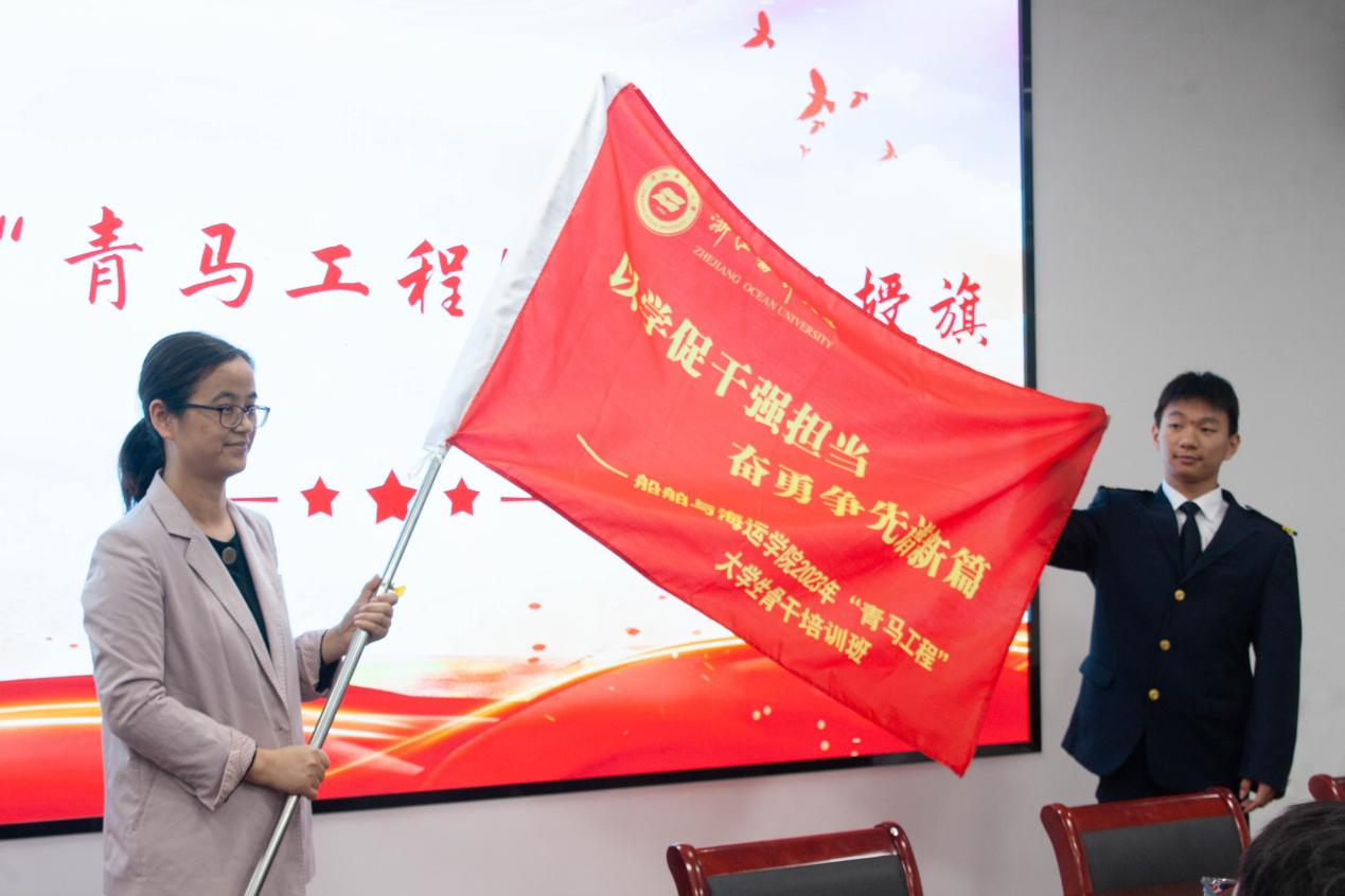 随后,学院党委副书记、纪委书记何晔为“青马工程”培训班授旗。