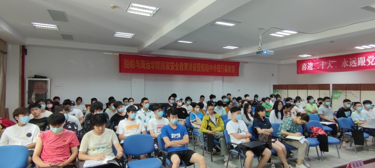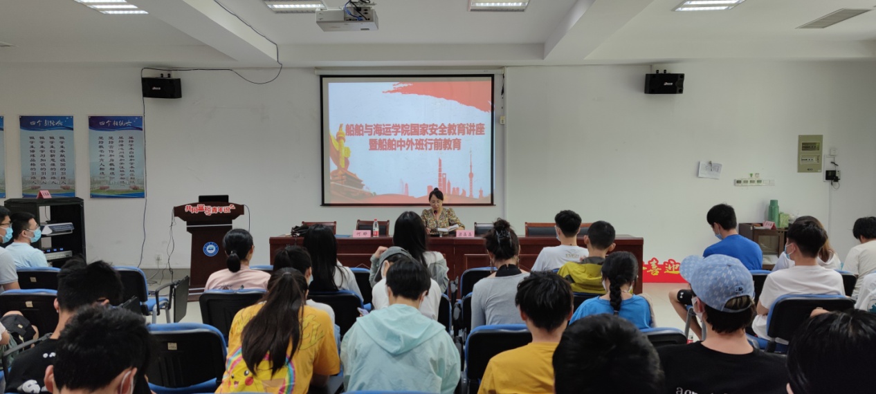 2022年6月29日上午,船运学院在工科楼120举行国家安全教育讲座暨船舶中外班行前教育,舟山市国家安全局工作人员及学校国际交流合作处梁晶晶老师受邀主讲,2019、2020、2021级船舶中外合作班全体同学参加讲座,讲座由学院党委副书记、纪委书记何晔主持。