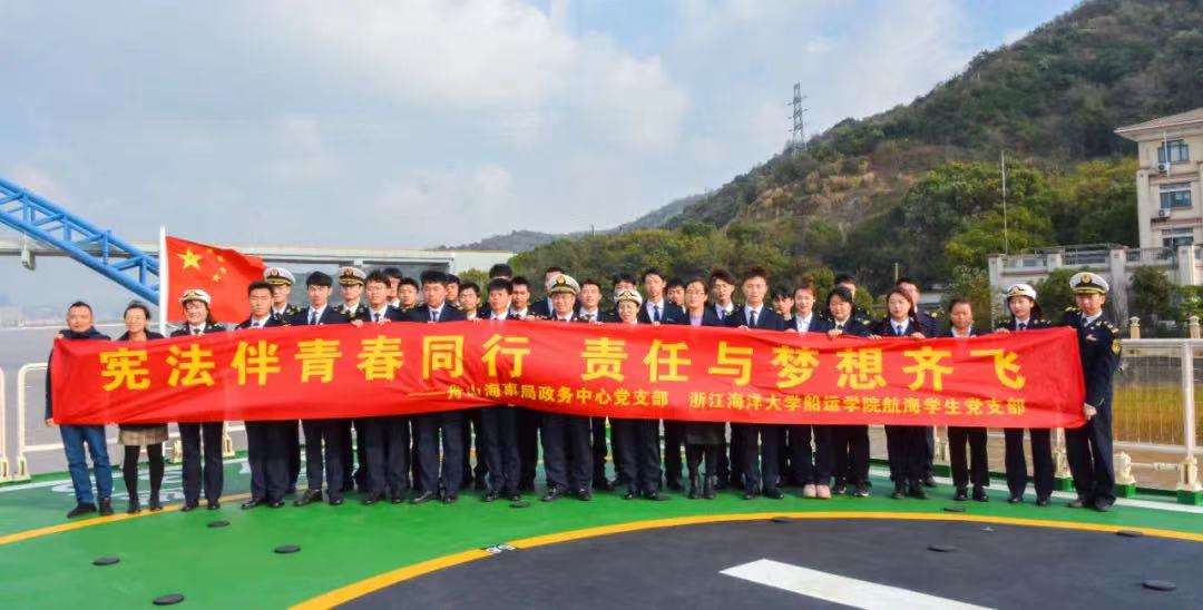 坚定不移跟党走,为党和人民奋斗,是共青团的初心使命。学院团委始终坚持以习近平新时代中国特色社会主义思想为指导,认真学习贯彻习近平总书记系列讲话精神,把党的好声音、好政策第一时间带到青年身边,用习近平新时代中国特色社会主义思想铸魂育人。紧跟步伐“及时学”,组织青年第一时间学习党的十九大及历届全会精神,学习习近平总书记“七一”重要讲话精神,关于教育的重要论述,关于船舶、港口、运输等领域的重要指示,给青年学生的回信和寄语等;推进组织共建“联动学”,与舟山边检站、舟山海事局、海晨船务、城市驿站、南洞艺谷、蚂蚁岛红色教育基地共建,扩宽育人阵地,创新方法,相互促进,强化协同育人,提升思想政治教育实际效果;充分利用网络资源“随时学”,青年大学习平均学习率95%、红色教育网络课堂平均分92,学习强国每天至少20分、党团知识竞赛参与率92%,及时补充最新鲜的时事热点,走心又走新。将思想引领贯穿育人全过程,航海本科生党支部被列为全国第二批党建工作样板支部培育创建单位,并涌现出一批先进典型,廖志浩获评“中国大学生自强之星”,雷浩获评“中国大学生自强之星”提名奖,张仲瑞、彭华超获评“中国电信奖学金暨践行社会主义核心价值观先进个人”,姬士林被授予“维护国家安全积极分子”称号(省国安厅授予),褚文月在“浙里青春正飞扬”浙江省大学生就业创业人物事迹征集活动中入选军营大学生战士典型人物;吕心怡获评舟山市先进团员;张文华在辽宁舰驰骋大海并以优异成绩考上解放军信息工程大学;刘男特招从警于武警新疆总队。