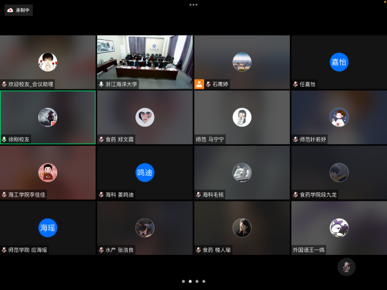 2022年杭州青年校友座谈会以线上方式。浙海大杭州青年校友会代表、在杭青年校友代表,学校办公室(校友办公室),党委学工部、学生处,教务处,团委,创新创业学院等部门负责人及二级学院教师代表等60余人参加了座谈会。座谈会由伊莉讨论区