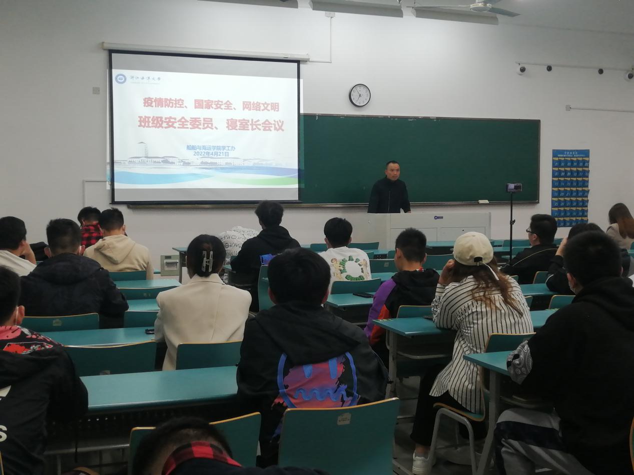 学工办采取寝室长线上会议+班级安全委员线下方式,召开安全教育专题会议,布置疫情防控、国家安全、网络安全文明、寝室安全教育等相关工作,学工办全体辅导员参加会议,学工办主任胡金保主持会议。