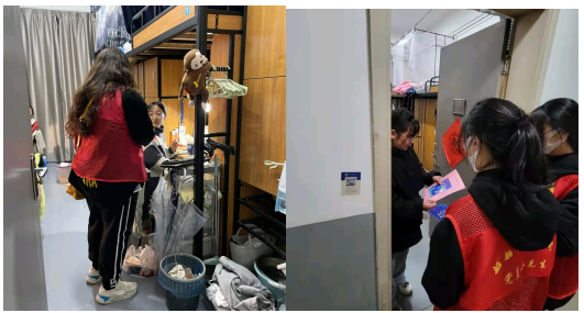 组织“党员小先生”先锋队深入学生寝室,实地开展防疫及安全宣传。