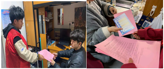 疫情防控告知书》、反诈骗及国家安全宣传手册等发放到学生手中,张贴在寝室醒目位置,“党员小先生”先锋队向同学们现场讲解校园疫情防控、校园安全相关规定,防诈骗及国家安全相关知识,及时解答学生疑问,做到“有问必答。”