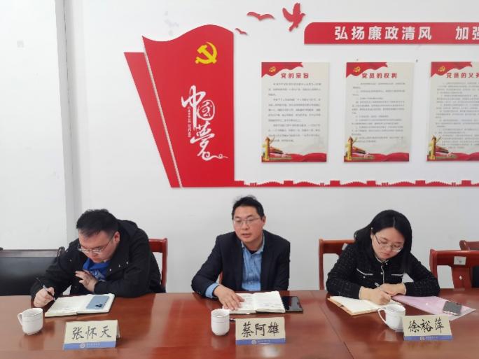 团委副书记蔡阿雄一行来我院,对学院团学工作进行调研和指导。学院党委副书记、纪委书记何晔,学工办主任胡金保,分团委书记严敏慧及学工办辅导员参加本次调研会。