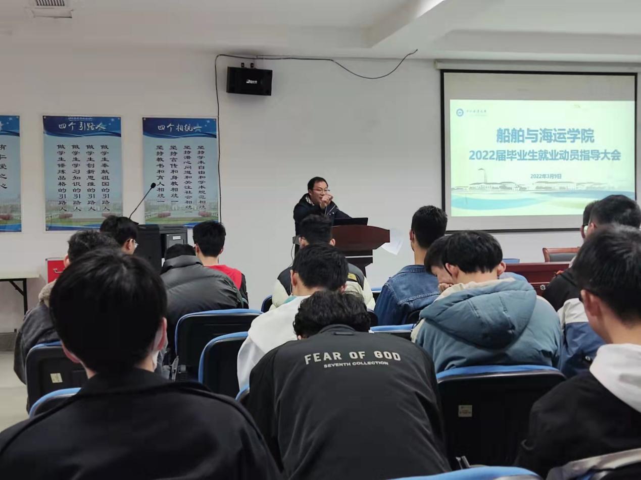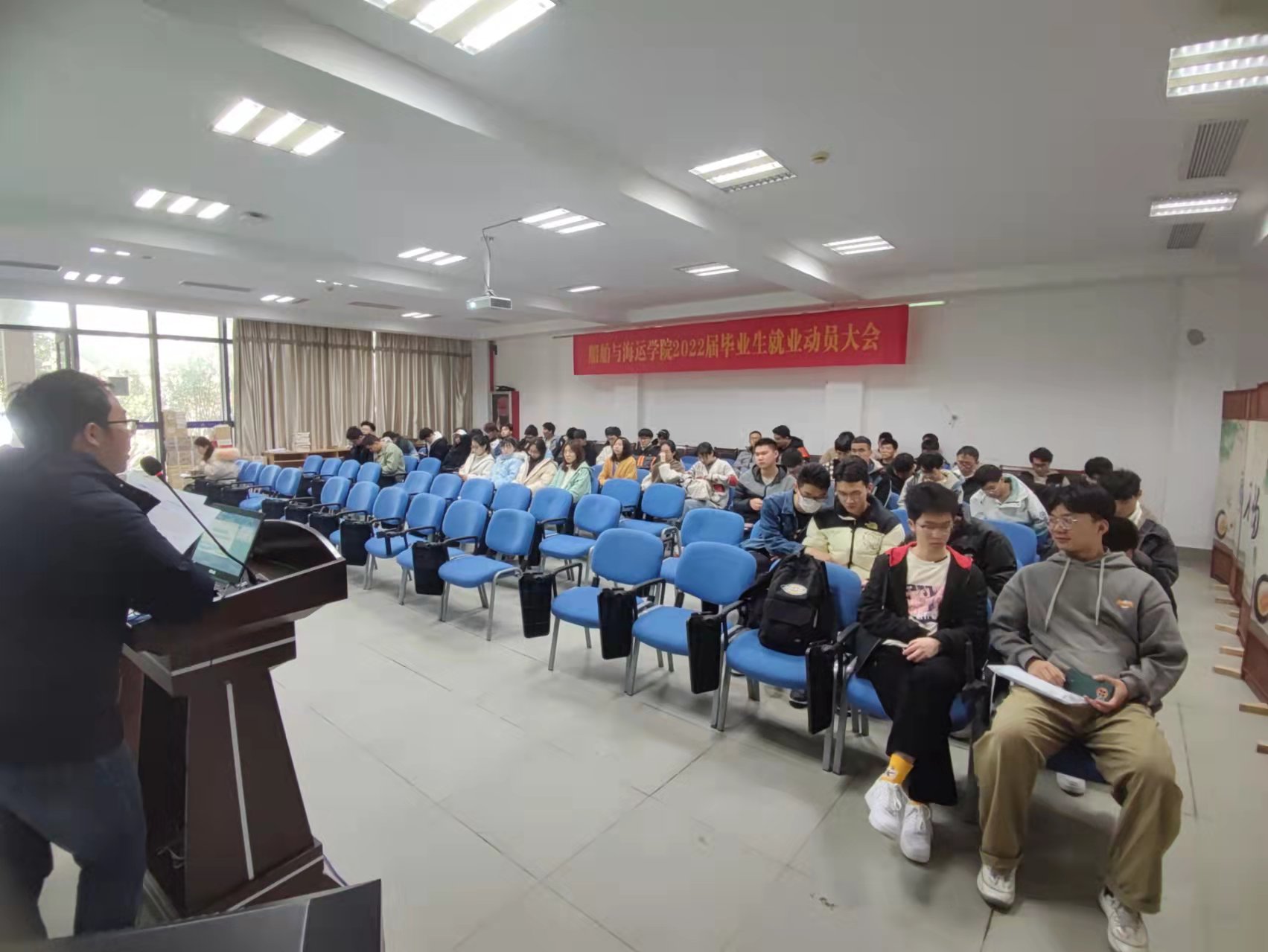 在工科楼120报告厅召开2022届毕业生就业动员指导大会。学院全体毕业生、分管就业辅导员参会,学工办主任胡金保主持会议。