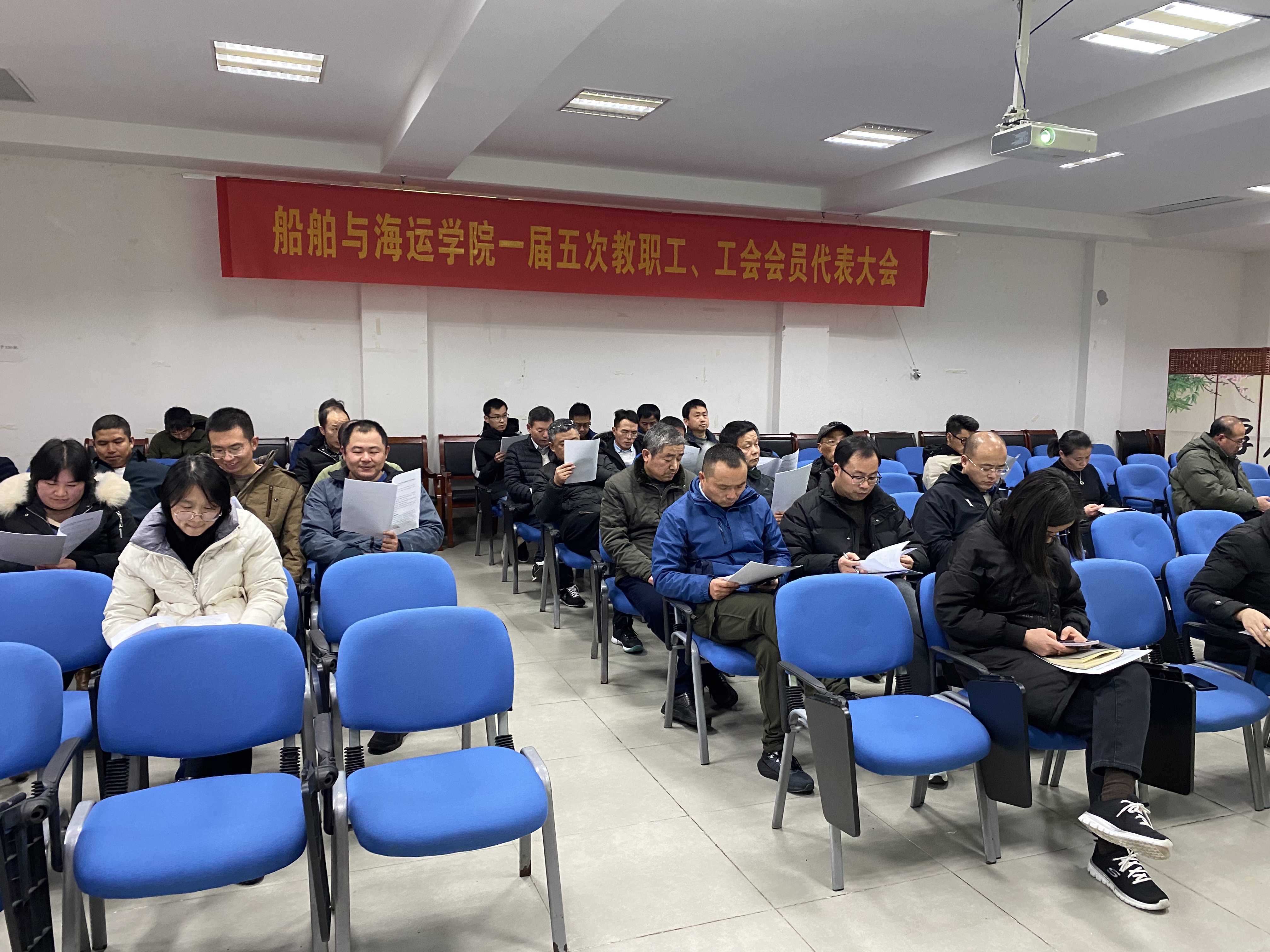 1月14日下午,学院一届五次教职工、工会会员代表大会在工科楼120报告厅召开,会议由学院党委委员、工会主席任永华主持。会议在庄严的中华人民共和国国歌声中拉开序幕。