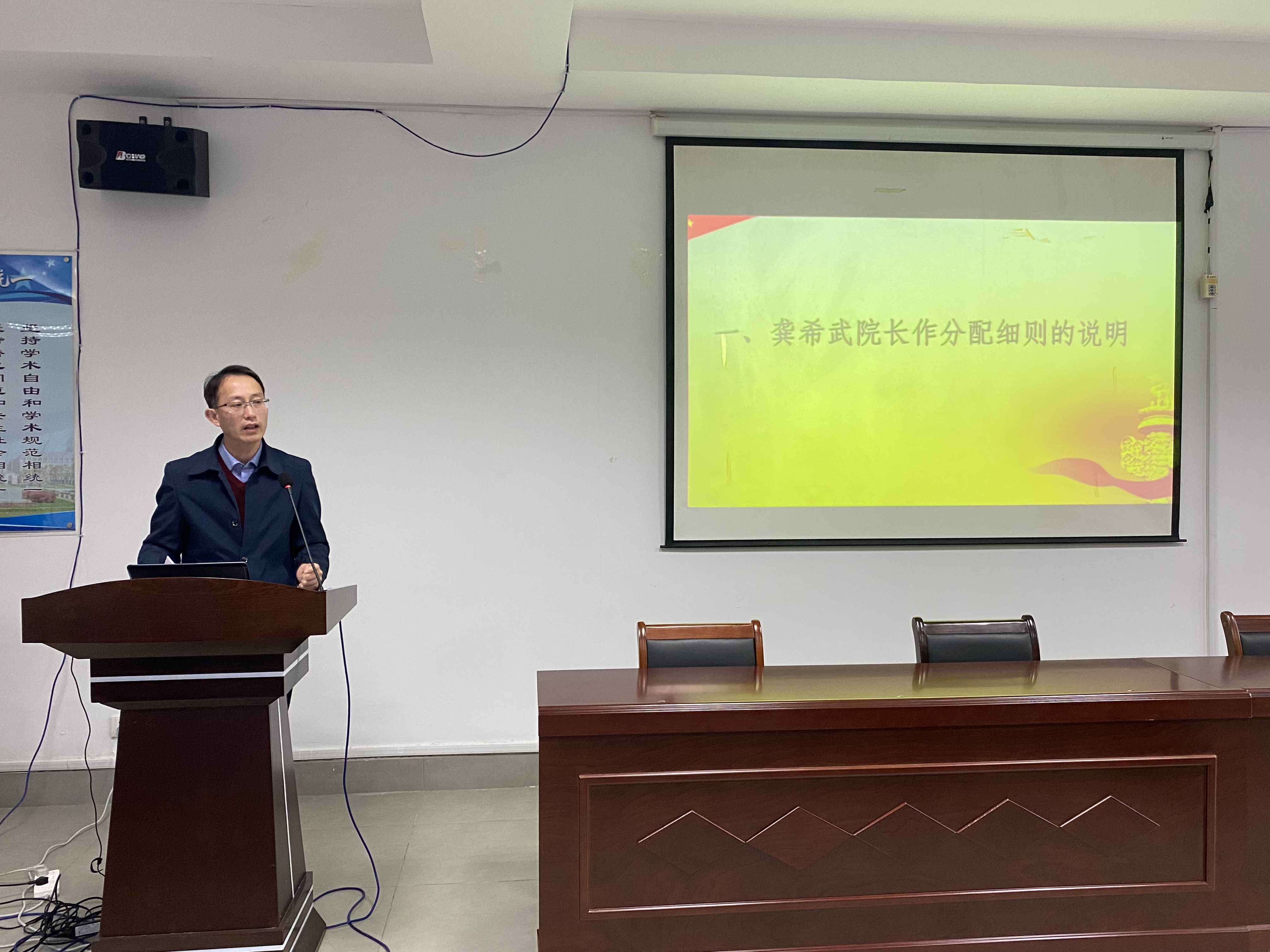 2021年年终分配与创收收入分配细则》的说明。随后各位代表书面审议了文件并进行了分组讨论。各位代表积极建言献策,从分配的原则、分配的内容、分配的范围等方面提出了建设性的意见和建议,院长龚希武就所提意见和建议进行了反馈。