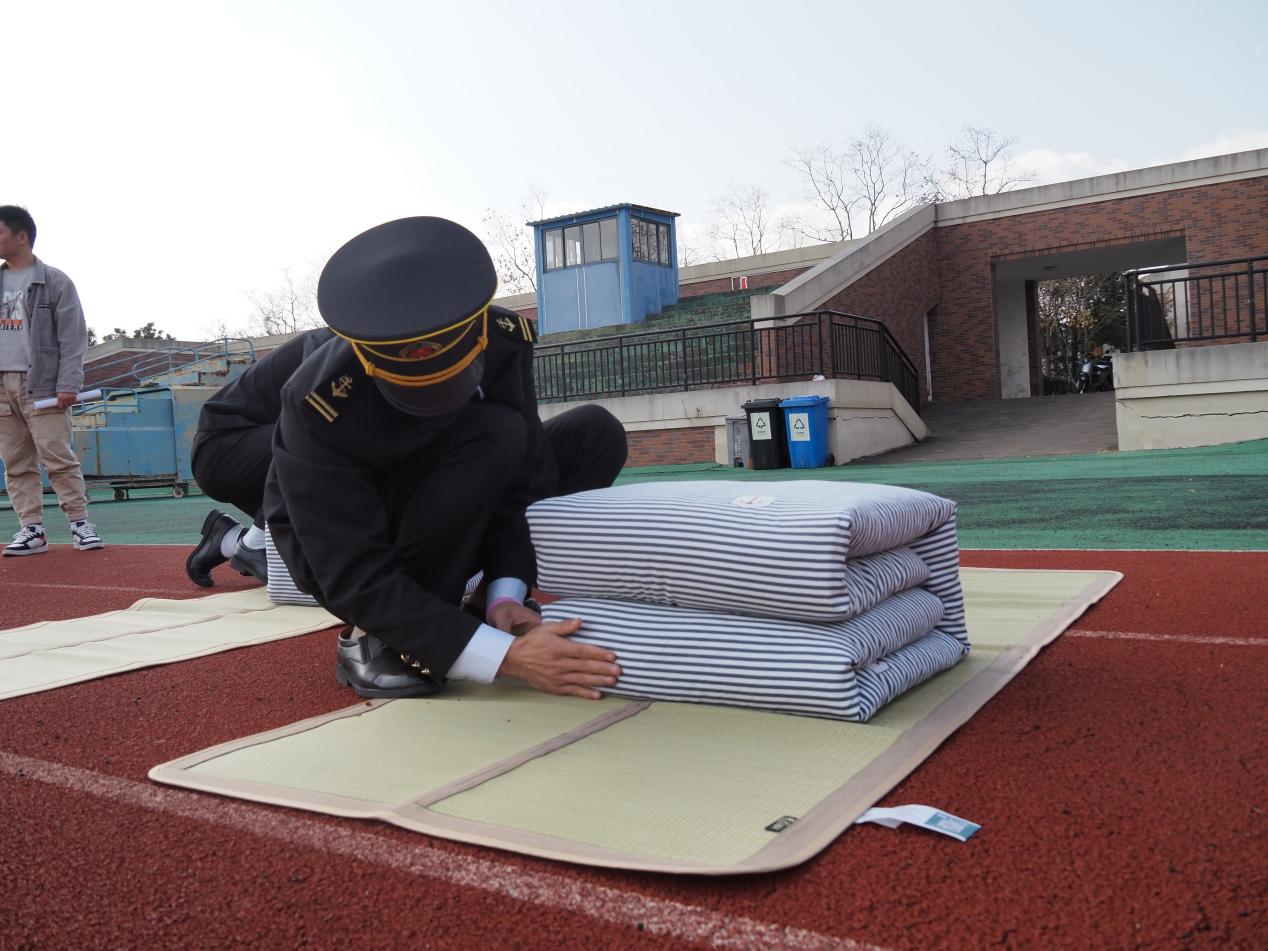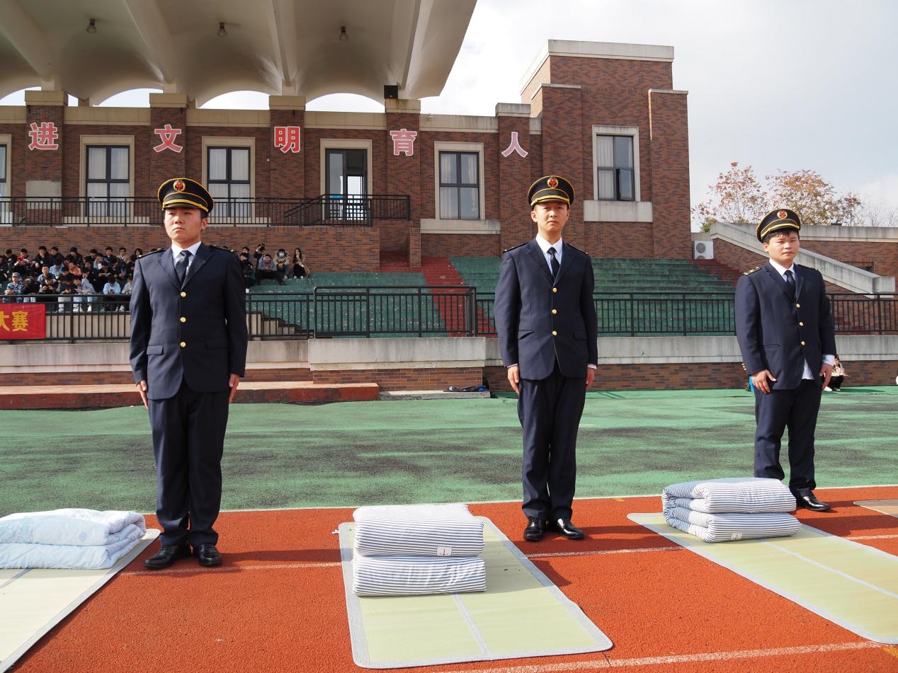 学工办主任胡金保老师进行点评,他指出叠被子比赛简而不凡,我们应当从日常生活的点滴做起,养成良好的生活习惯,提高自律性,并持之以恒。