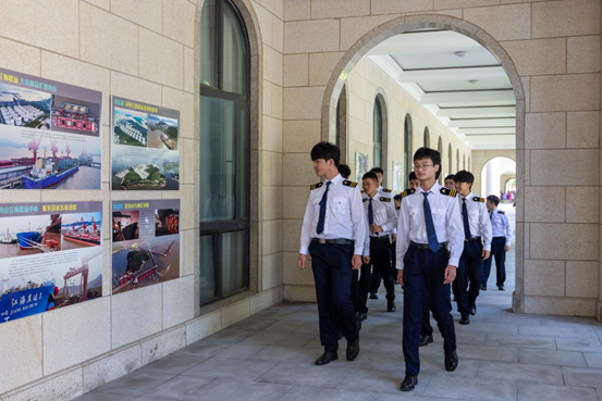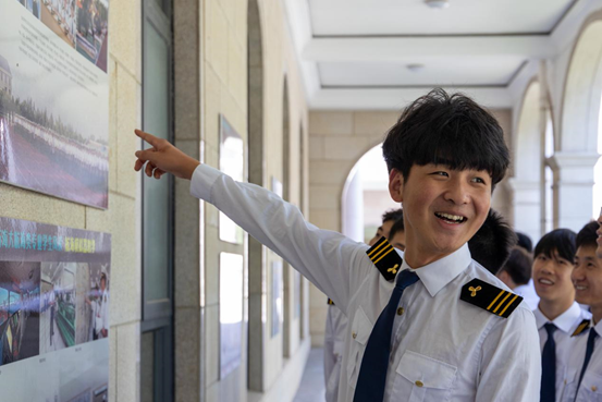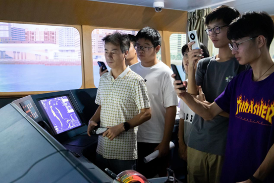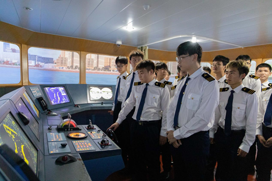 海船培训中心,参加学院海洋教育第一课,同学们积极体验海船驾驶台操作,参与航海长廊学习。