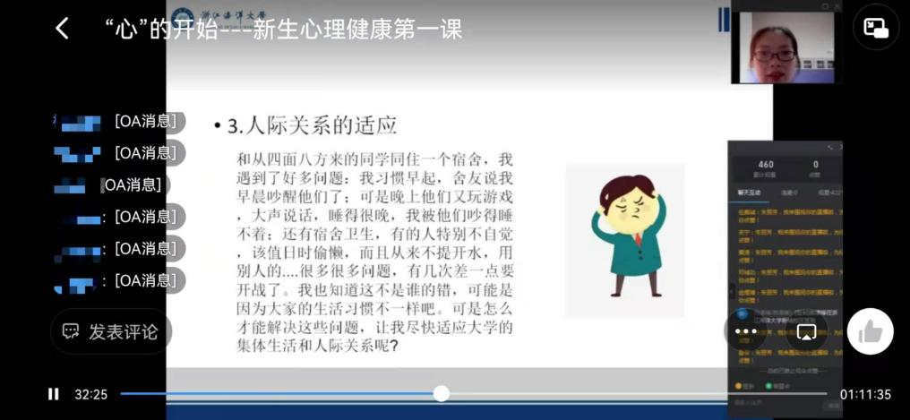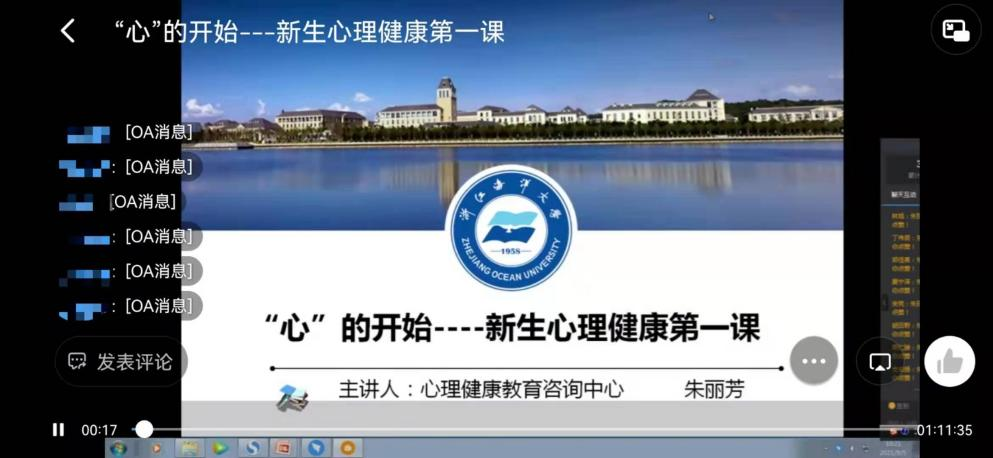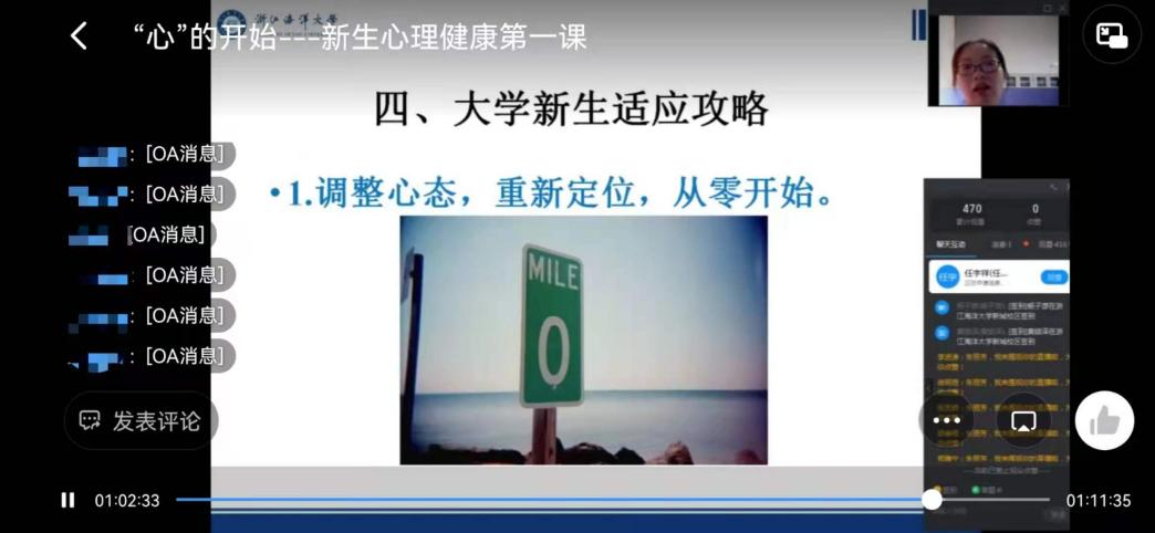 举行了“‘心’的开始”新生心理健康第一课,本次心理健康教育课程由学校心理健康教育咨询中心朱丽芳老师主讲。按照疫情防控需求,本次讲课以线上直播的方式进行。