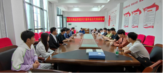 在工科楼117会议室举行2021届毕业生代表座谈会。副院长高军凯、党委副书记何晔、学工办主任胡金保及20余位毕业生代表参加座谈。