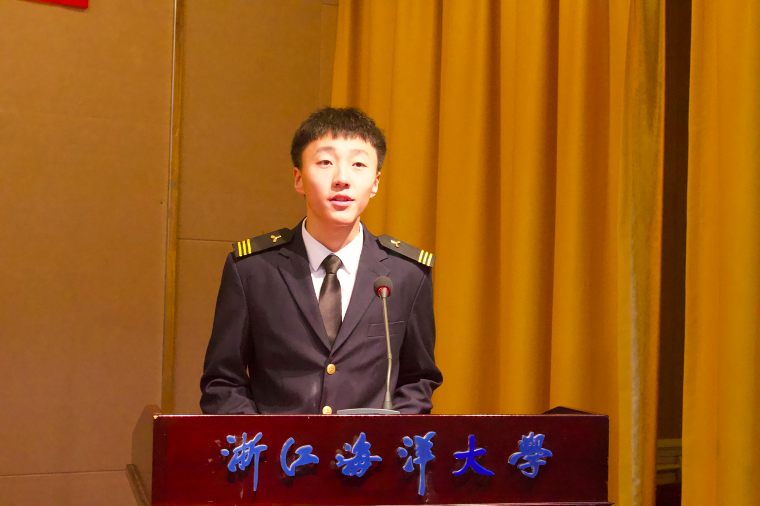 获奖代表A18轮机2班刘奕泽分享获奖感言,他表达了感激与喜悦,分享了学习方法,并表示将在未来的日子中戒骄戒躁,刻苦学习,不辜负公司的支持与厚爱,不辜负老师和同学的信赖与肯定。