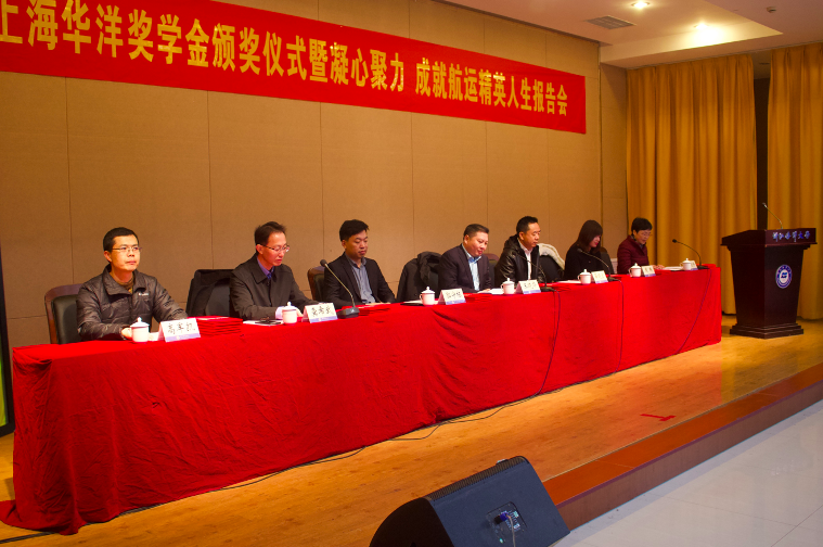 在杨存国会展中心2号厅隆重举办了上海华洋奖学金颁奖仪式暨“凝心聚力 成就航运精英人生”报告会。上海华洋海事科技发展有限公司副总经理王晓华、业务主管郭守栋、业务主管周玮、新加坡太平船务上海公司总经理薛晓宏、伊莉讨论区