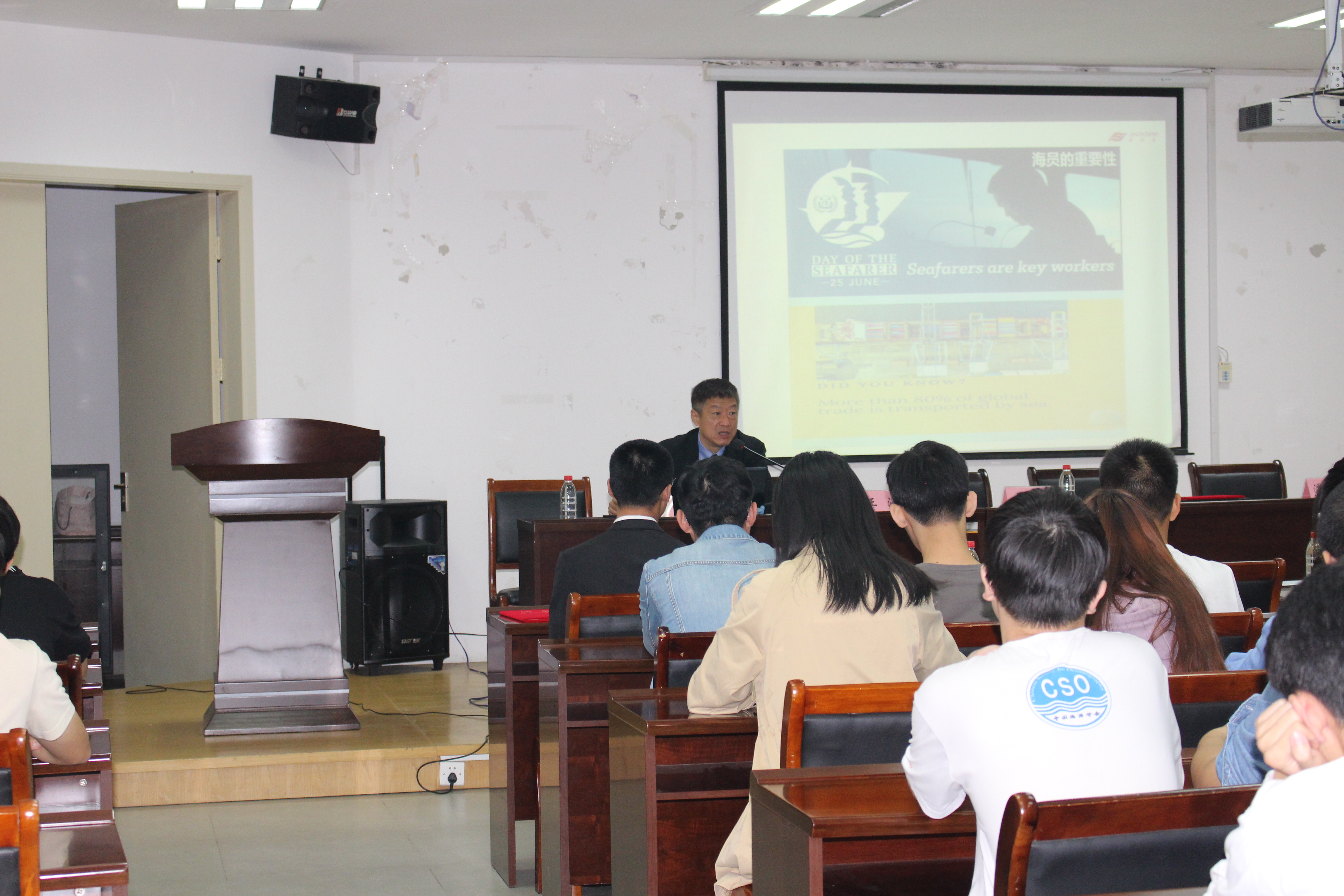 百余位海上专业学生进行了题为《新形势下如何正确规划国际海员职业发展》的讲座。讲座从行业发展趋势、国际航运人才市场的变化等方面着手,阐述了海员职业的重要意义和历史使命,及海员职业的发展路径规划。讲座生动形象,博得在场师生广泛好评。
