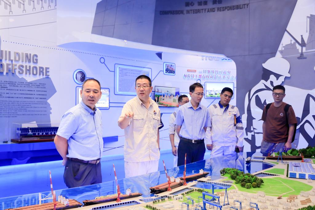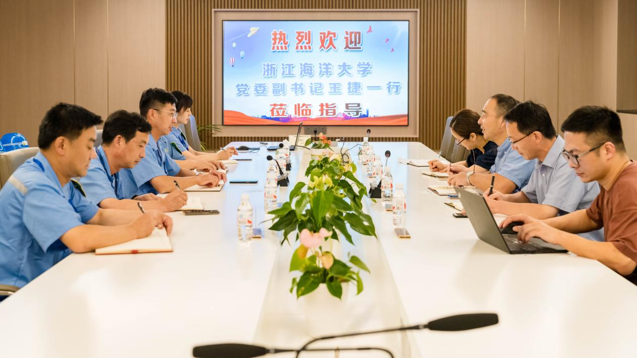 王捷一行走进舟山中远海运重工有限公司,实地考察了公司展厅等,随后与公司领导开展座谈。座谈会上,舟山中远海运重工有限公司纪委书记张照对王捷一行的到来表示欢迎,张照表示希望能以此次调研为契机,增进互助互信,推动校企基础合作向战略合作转变,实现紧密合作,发展共赢。王捷对公司的发展表示充分肯定,希望能与企业协同开展实习实践育人、科技研发、社会服务等,实现共同发展,齐心协力促进校企合作再上新水平。