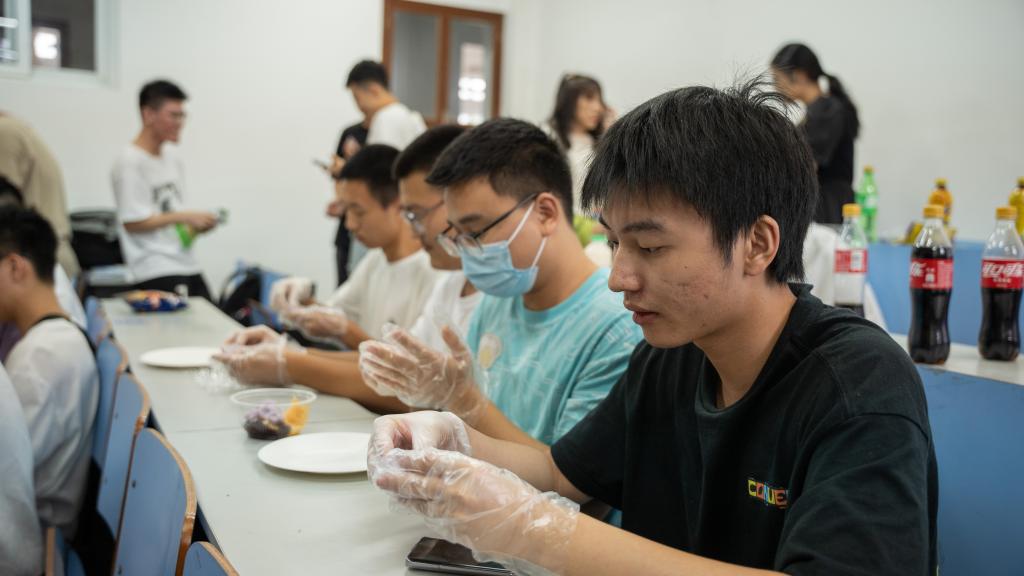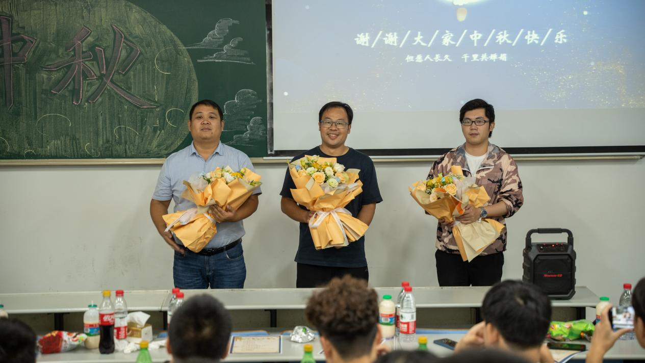 花好月圆,盈盈风抚霜;纸短情长,淡淡岁月长。中秋教师双节已至,借联谊会之机,同学们为老师们献上了饱含心意的鲜花,表达了诚挚的节日祝福。活动最后环节,两班同学合力制作了形状各异又独具匠心的月饼,排遣了远离家乡的乡愁。进入海大以来的第一次集体联谊活动,让大家充分感受到了新集体家一般的温暖和师生间如沐春风的关怀。