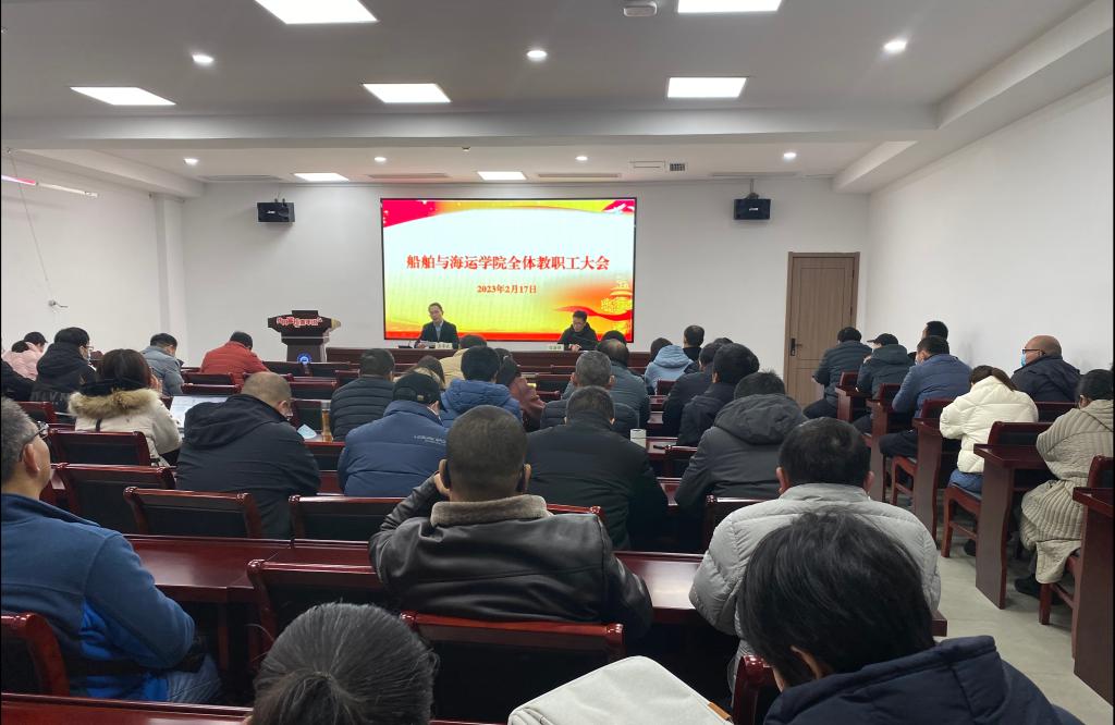 会上,龚希武从学院安全稳定、专业建设、学科建设及申博、人才引进、教学基础设施、学院影响力和学术声誉六个方面对2022年整体工作进行了总结,并对学院2022年考核结果及四年任期重点任务目标完成率进行了通报。他指出,2022年学院在党建、专业国际认证、学科建设方面取得了一定成果,师资队伍建设和教学条件设施不断推进,学院影响力也在不断提高。但是,在任期目标完成率上与其他学院还存在一定差距,我们要奋起直追。并对2023年工作谋划进行了全面部署,重点围绕学位点评估、申博、人才引进、科研、教育教学、船员培训、学院制度完善等方面进行布置安排,强调要明确目标,加强重点领域工作持续推进,采取有效措施,确保2023年工作顺利圆满完成。