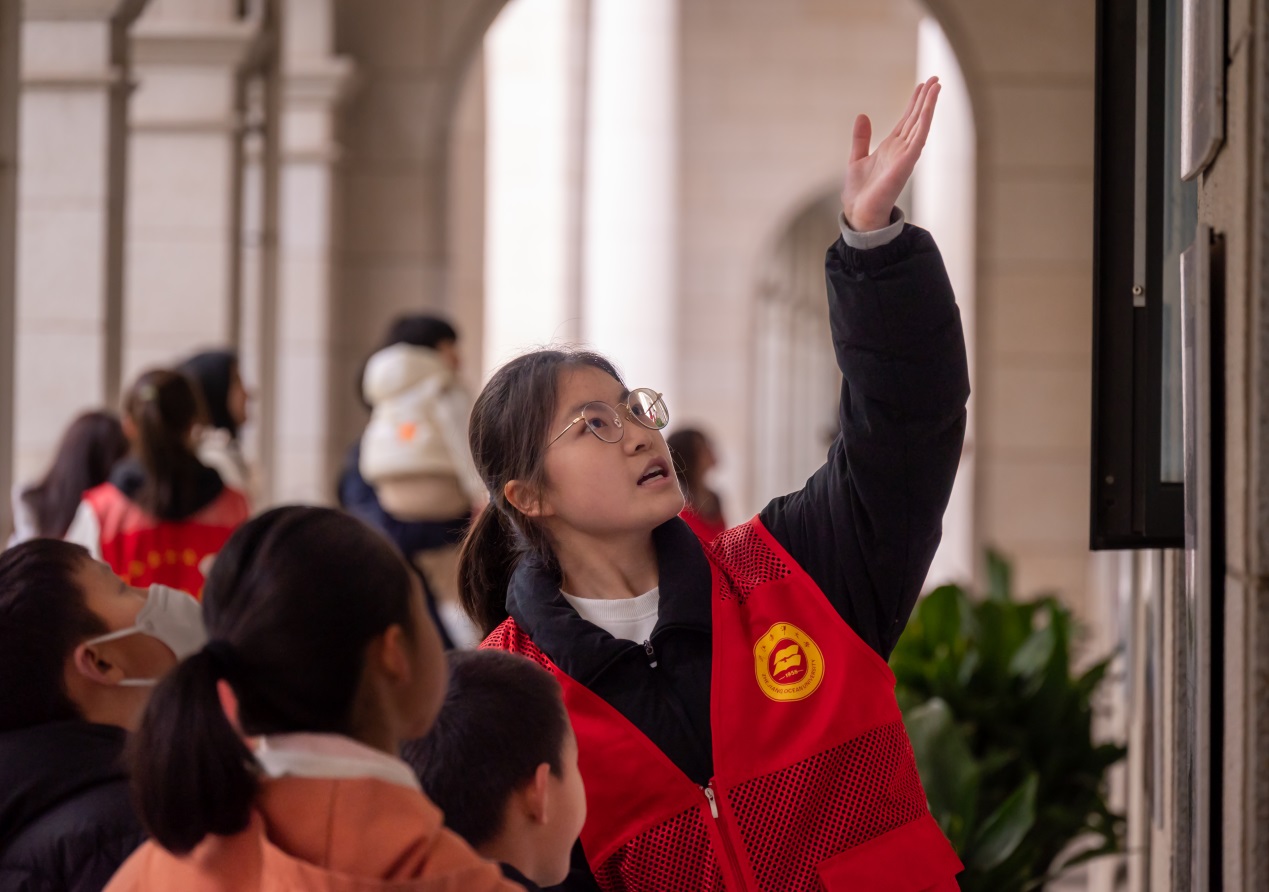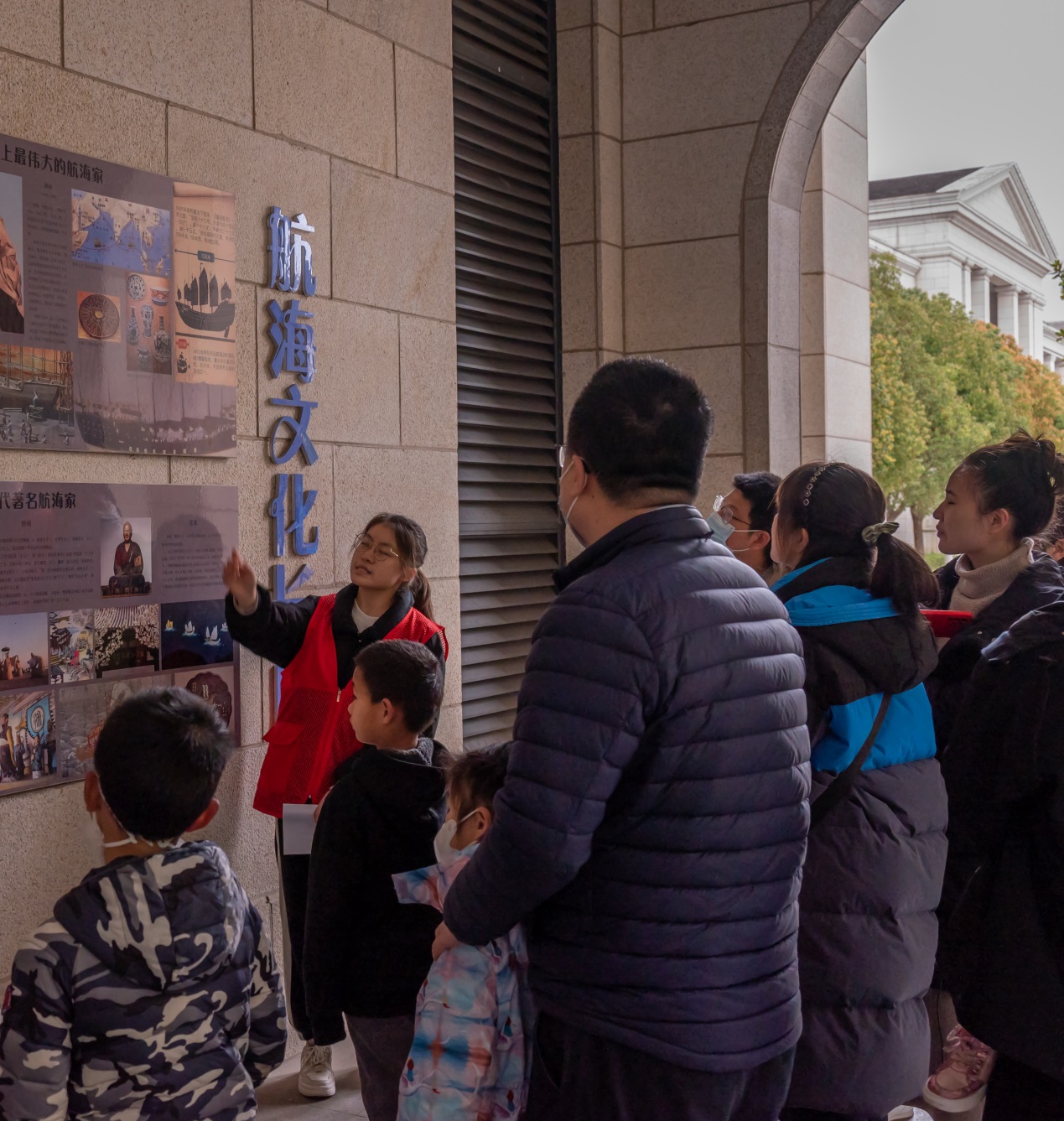 “党员小先生”带领小朋友们步入航海文化长廊,志愿者们将航海历史娓娓道来,小朋友们好奇的目光被精彩且充满哲思的海报吸引,沉浸在深邃神秘的航海文化之中。