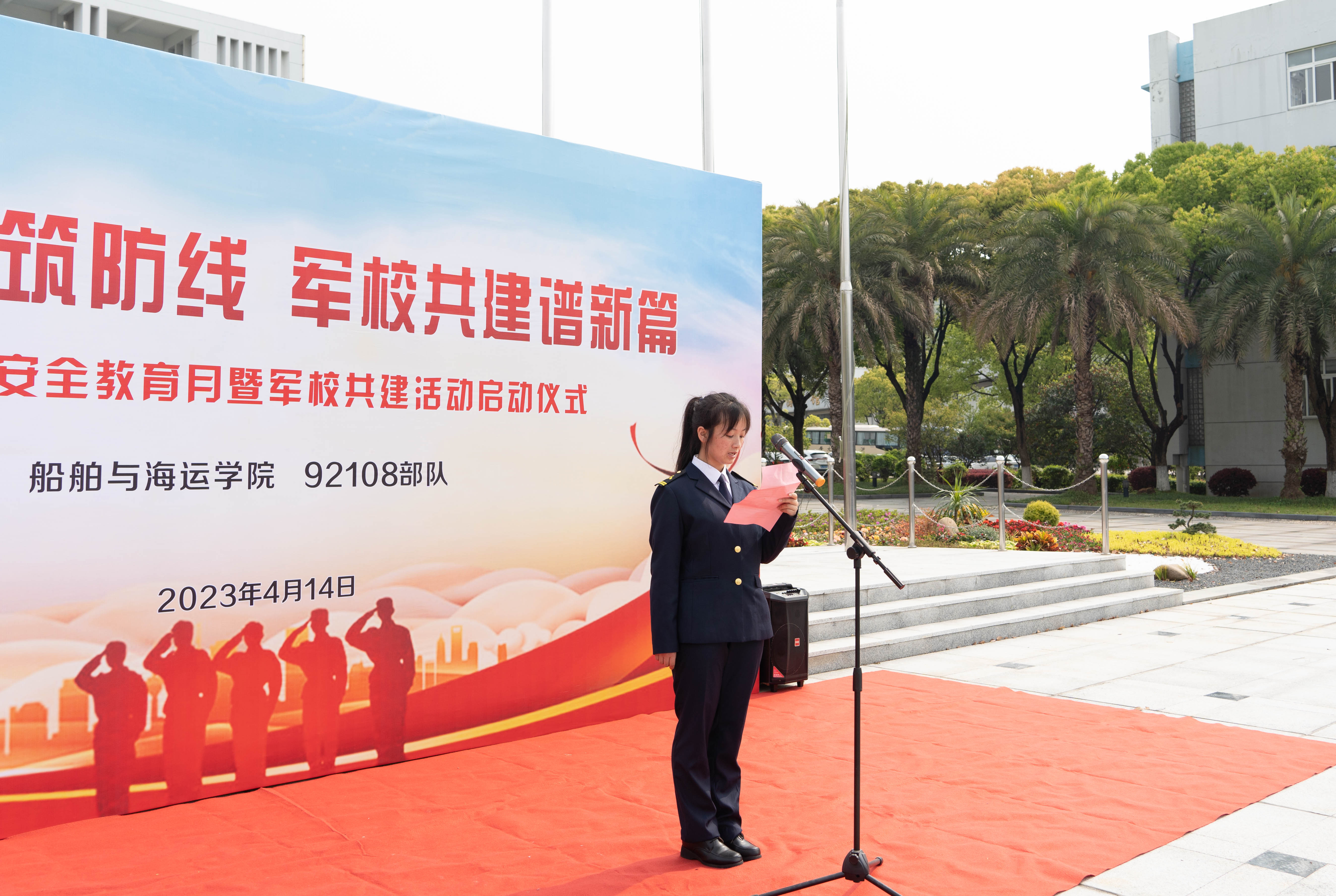 隆重举行2023年国家安全教育月暨军校共建活动启动仪式。中国人民解放军92108部队官兵,学院党委书记闫海强出席启动仪式,学院党委副书记、纪委书记何晔主持仪式。