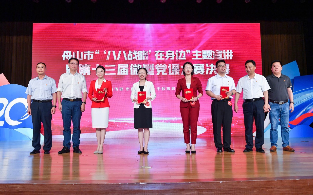 5月31日下午,由市委宣传部、市直机关工委、市教育局、市财政局联合主办,市新闻传媒中心承办的舟山市“‘八八战略’在身边”主题宣讲暨第十三届微型党课大赛总决赛在舟山海洋文化艺术中心落下帷幕,经过激烈角逐,我院石鹰婷老师荣获总决赛一等奖。