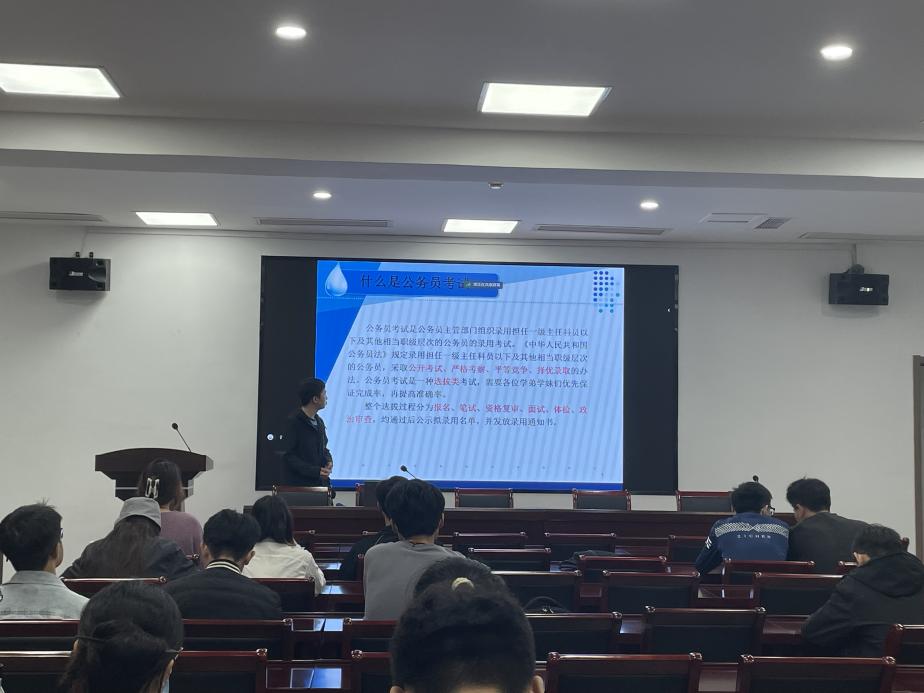 第八届研究生学术论坛在工科楼120顺利举行。本次学术论坛是一场有关考公考编和就业岗位选择的经验交流分享会,70余位研究生参加,论坛由杨茜主持,邀请了卢彦舟、张艺林和梅志虎等三位毕业研究生主讲,学院研究生会主办。