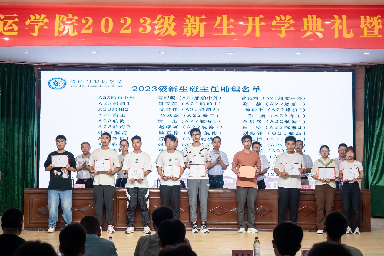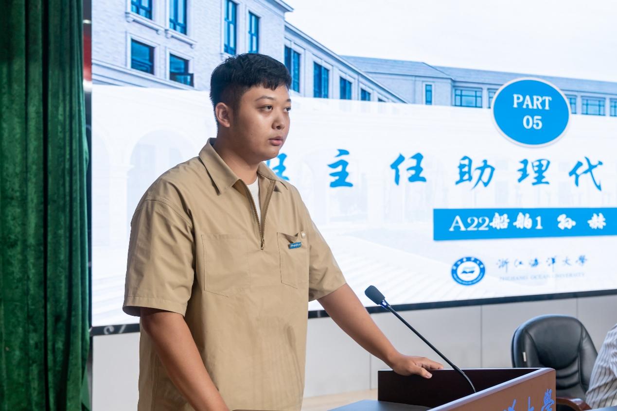 开学典礼上,学院为新生班主任助理举行了隆重的聘任仪式,A22船舶1班孙赫代表班主任助理发言,表示一定会恪尽职守,认真负责,把每一条指令落实到位,把每一项精神传达到位,尽心尽力地为新生提供帮助,承担好“桥梁”的责任,引领新生班级树立学习氛围浓厚、个人积极向上、班级团结互进的良好班风。