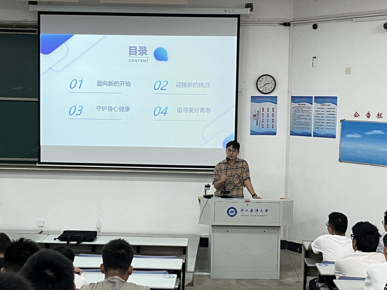 组织2023级全体新生参加心理健康第一课专题讲座。心理教育中心杨京霖老师受邀主讲,讲座由学工办胡金保老师主持。