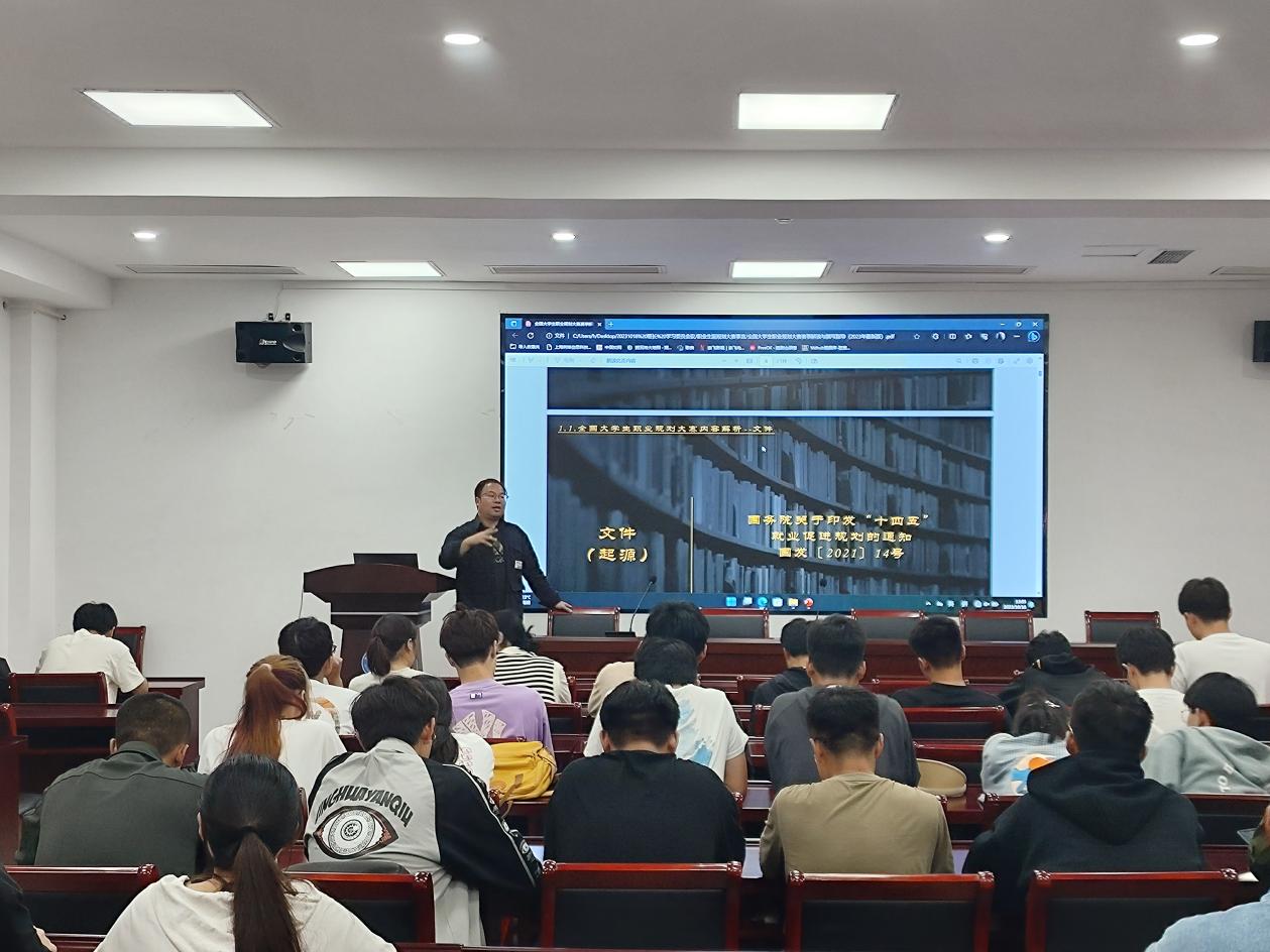 第三项议程,胡金保老师详细介绍以“筑梦青春志在四方,规划启航职引未来”为主题的首届全国大学生职业规划大赛浙江省选拔赛、校赛等通知及相关写作技巧,鼓励同学们从提升自我综合素质、提升职业规划与就业技能等角度上积极参赛。