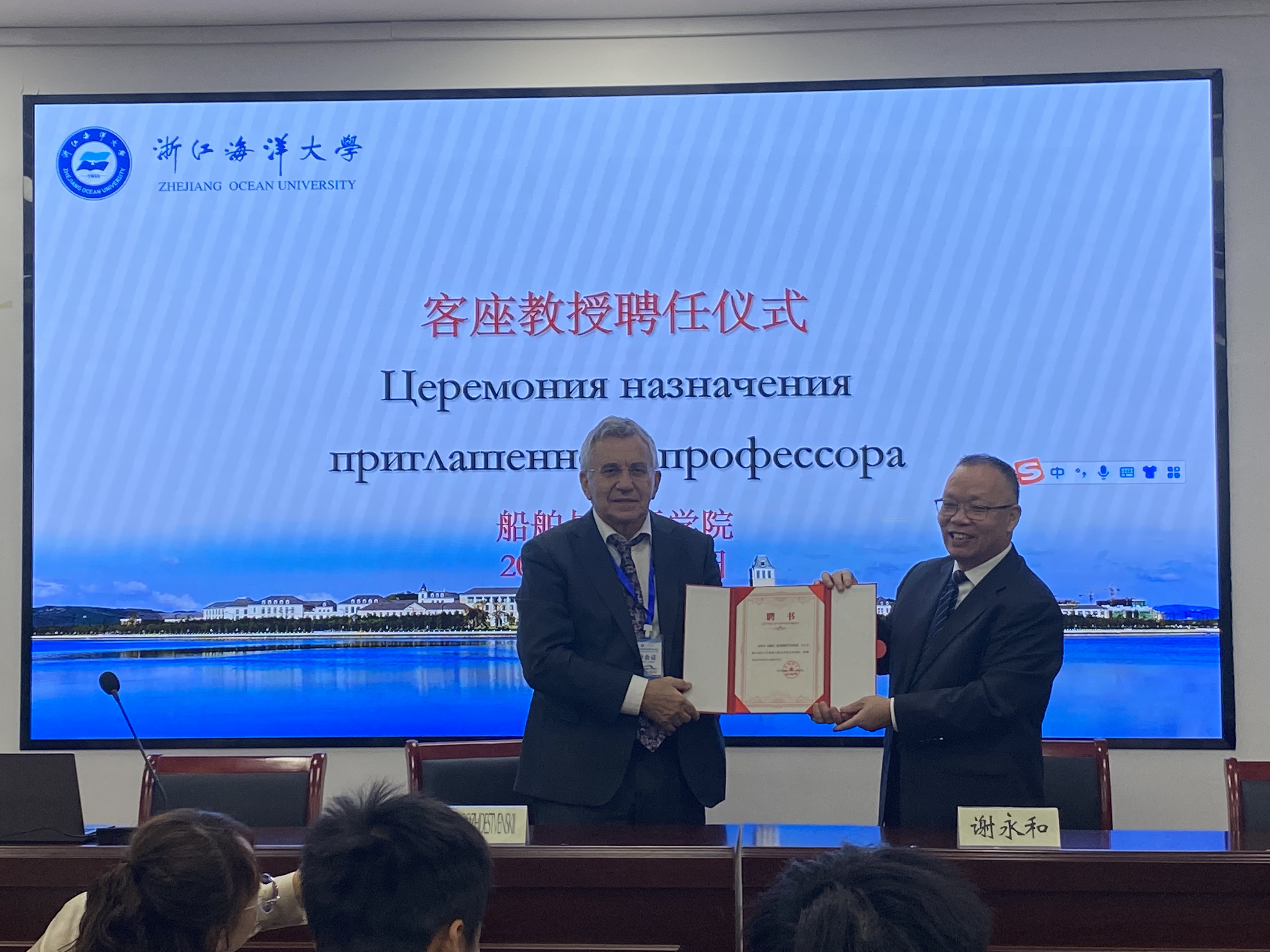 聘任仪式上,龚希武院长对我院船舶与海洋工程专业中俄合作办学项目举办十年历程进行了总结回顾,并介绍了Kirill ROZHDESTVENSKII教授的学术情况,由谢永和副校长为Kirill ROZHDESTVENSKII教授颁发船运学院客座教授聘书。
